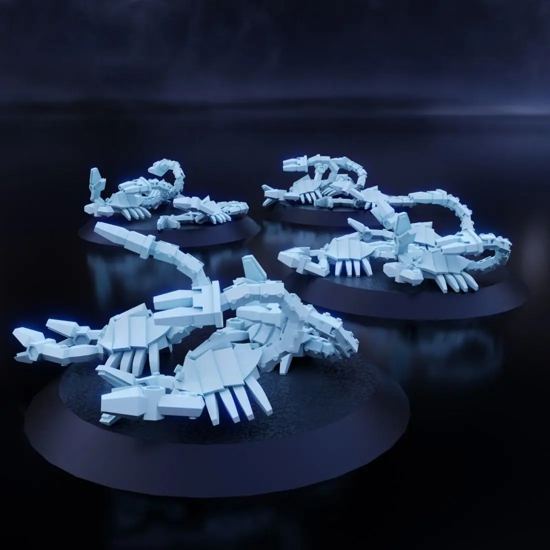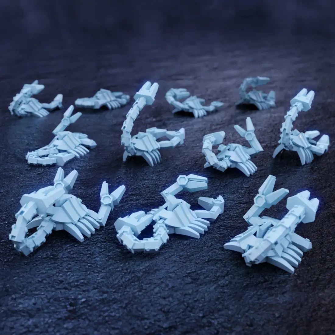 Skorp Swarms fit on a 40mm base (3 Skorps can fit on a base) and serve as a great proxy for fast attack units in 28mm scifi wargaming.