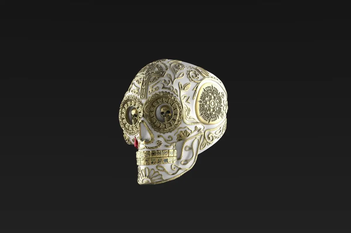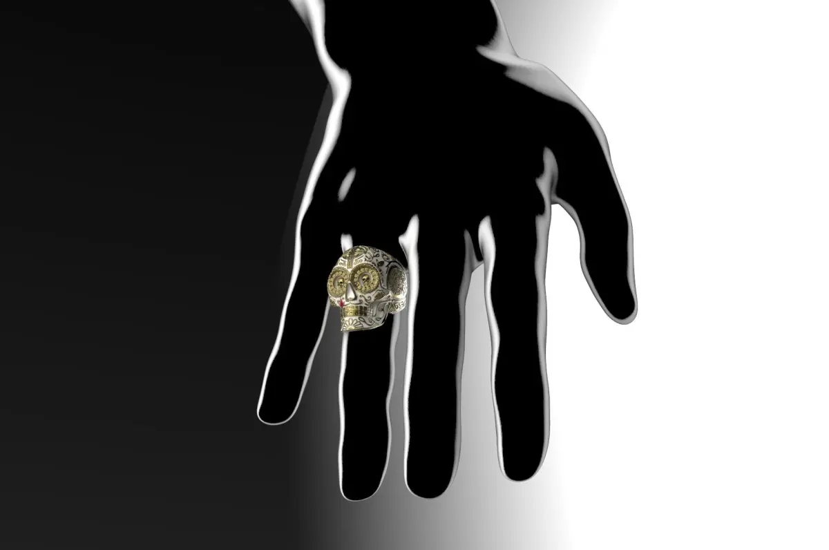 The skull chicano is now in the form of a ring. Saved floral ornament and slightly increased for 3D printing. Saved kind of fine handmade. If you need files for the keyshot, please send me message.