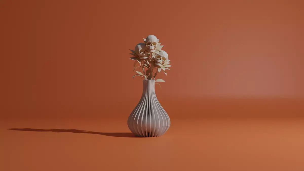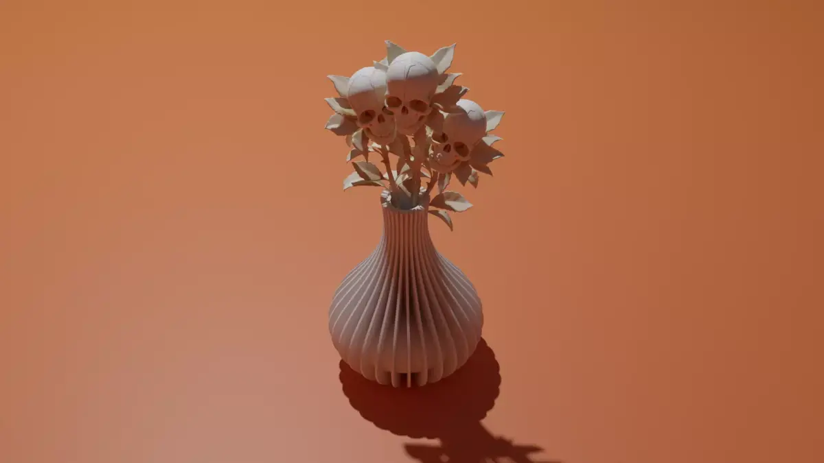 A unique 3D printable vase with skull-shaped flowers.This model combines elegance and darkness, creating an artistic piece that stands out in any modern or gothic-style home.