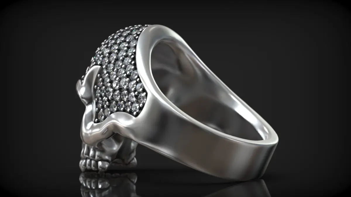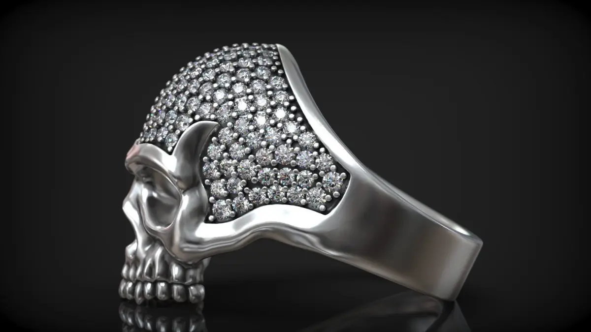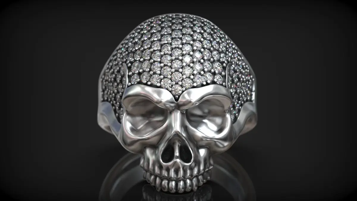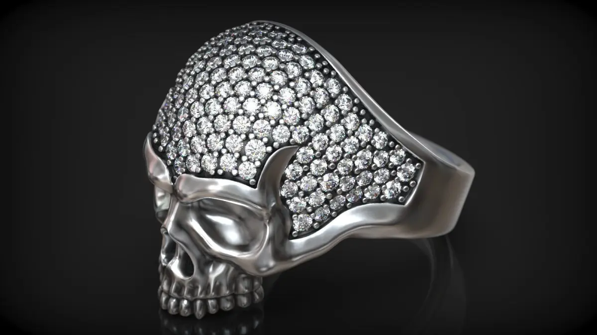 Brutal luxury 3D model of a bold luxury unisex ring in the shape of a skull, lavishly adorned with a full pavé setting of brilliant diamonds. This extraordinary piece combines edgy design with opulent detailing, creating a unique statement accessory.The ring features a meticulously crafted skull, its intricate contours and features brought to life with exceptional precision. Every surface of the skull is encrusted with dazzling pavé diamonds, which catch the light from every angle, adding a captivating sparkle to the already striking design.This piece is a perfect blend of boldness and luxury, offering a powerful symbol of both individuality and extravagance. The unisex design ensures it can be worn by anyone who seeks to make a bold and sophisticated statement.