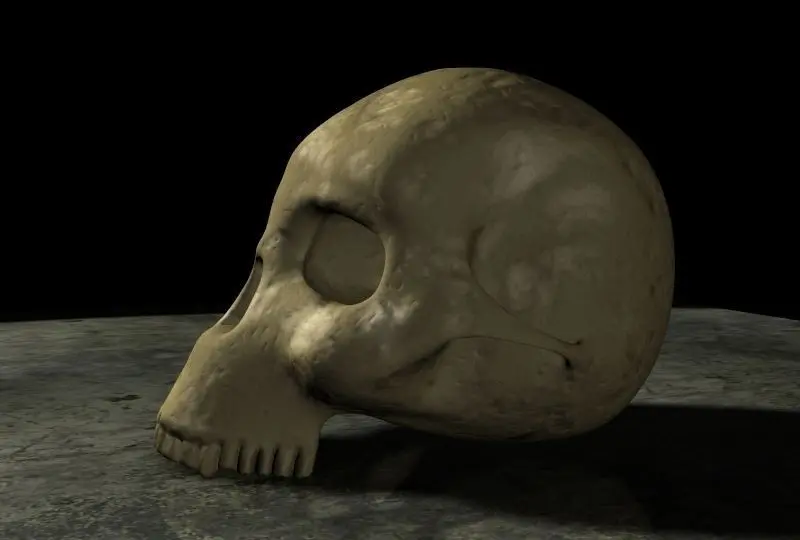 Procedurally textured (to look like it was fossilized or unearthed) hominid skull. No lower jaw.