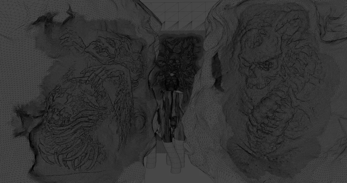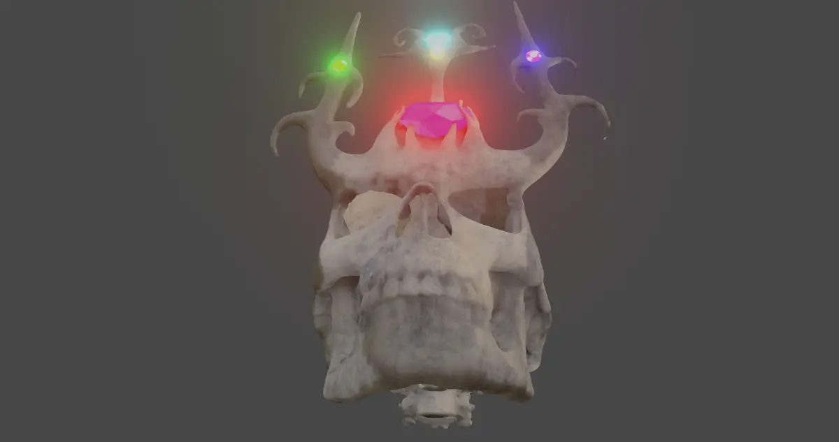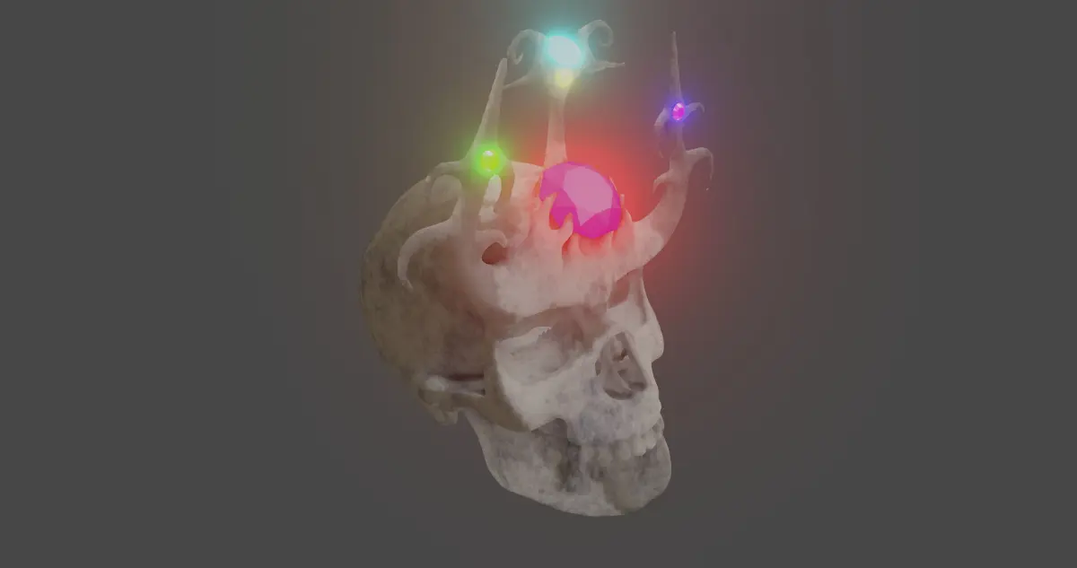 models1.skull king 3d model 2.skeleton skulpted 3 walls 3.crystal4.pebble,grass