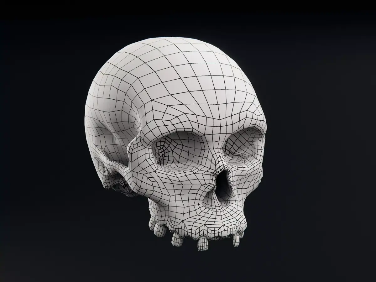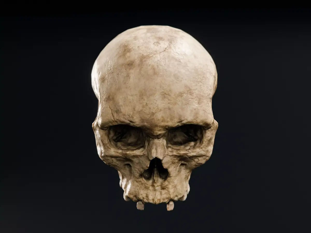 This skull has a baked 4K PBR Material including: diffuse, roughness, normal. All texures are packed into the blend files, ready to use. Additional texture download is provided for the other formats.