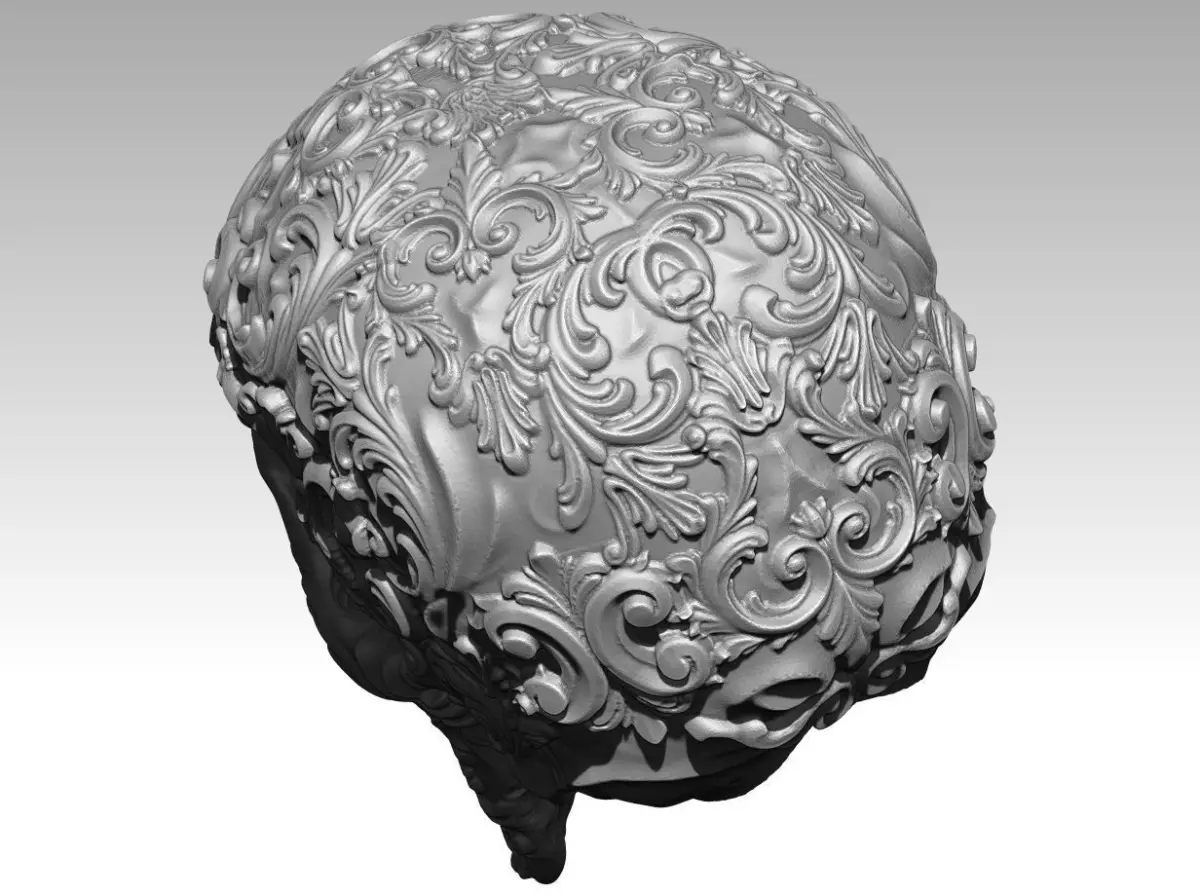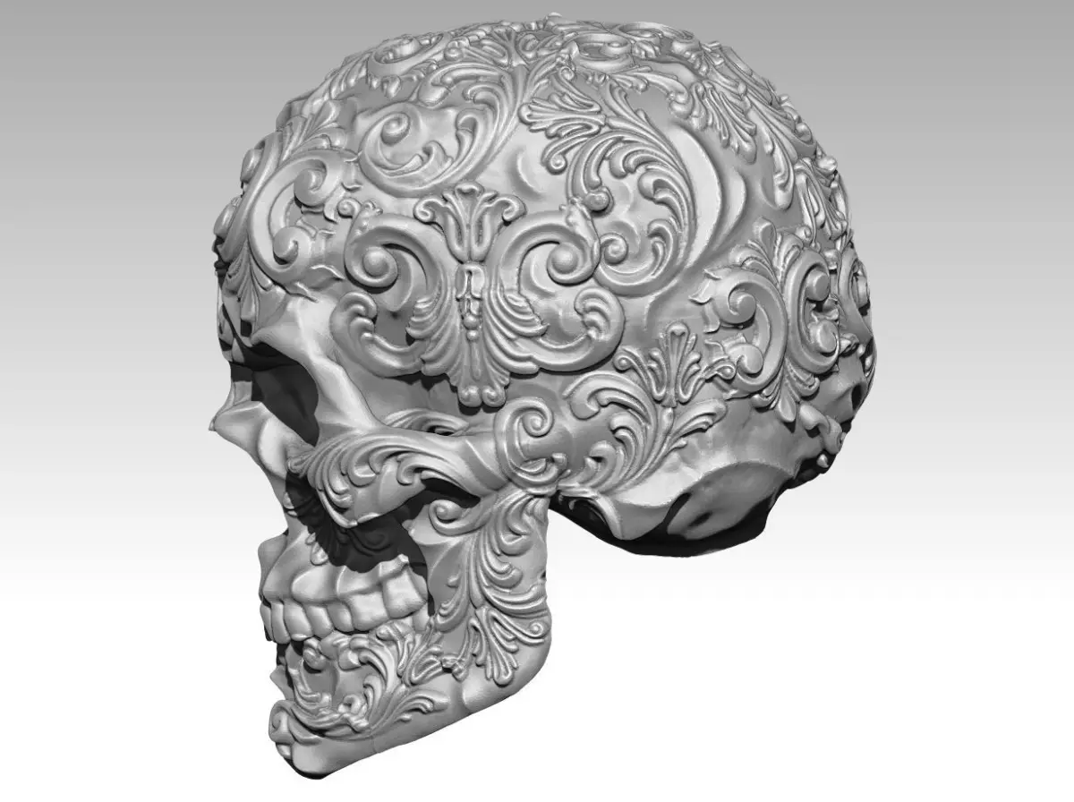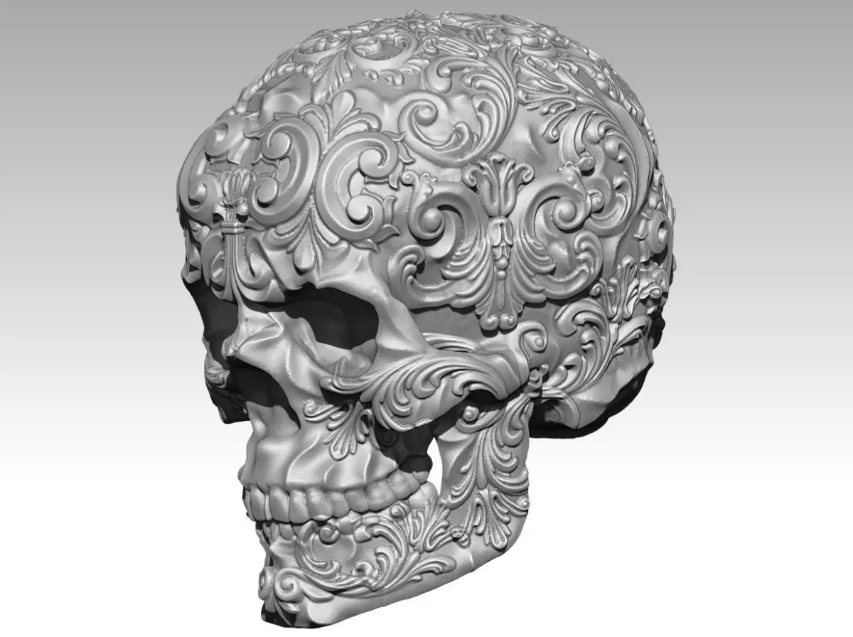 Skull man pattern carved flora 3D print model
