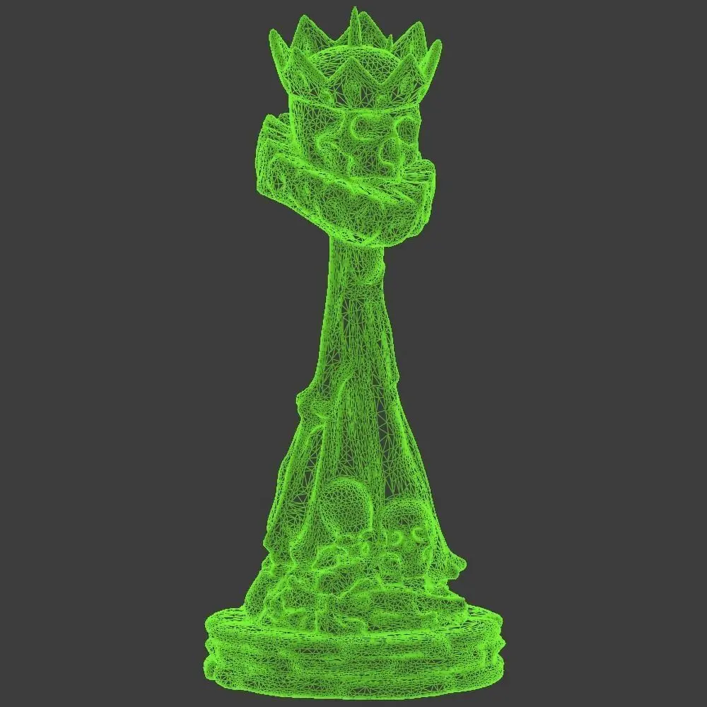 Queen 40x40x90mmThis set was modelled mainly for the purpose of 3D printing. The general shapes of the pieces were designed to resemble the traditional ones, although this set is extremely thematic. The individual pieces can fit beautifuly as a decoration object. Modelled: Blender Author: @maumaurg Textures and materials not included.