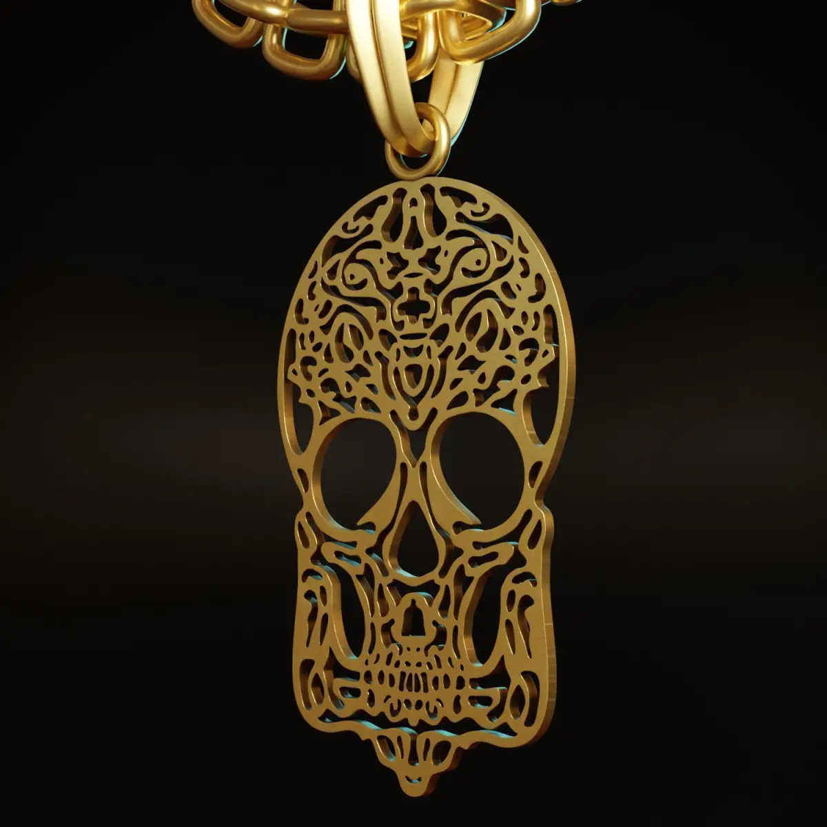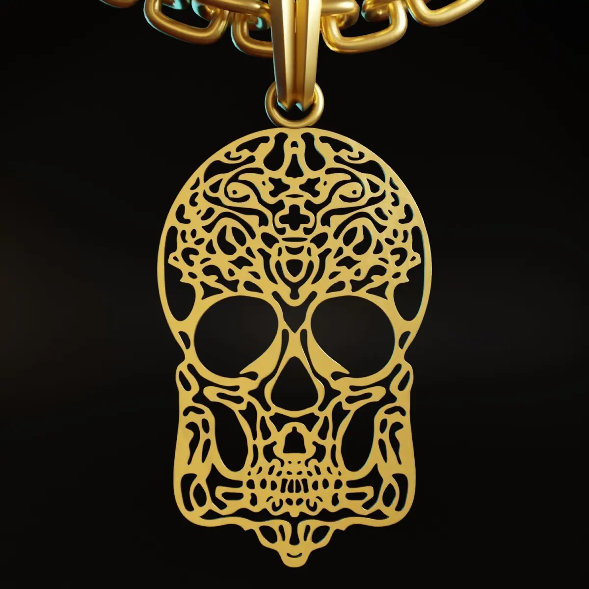 3D model of an Pendant depicting a Skull. It can also serve as a medallion, necklace/amulet adornment or as a general decoration asset.