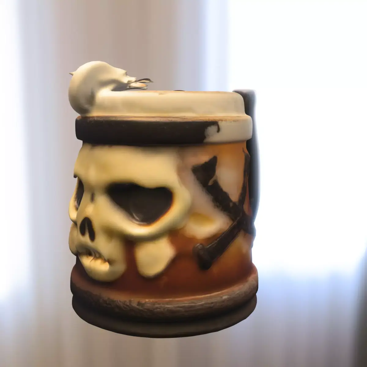 Detailed 3D model of a skull-themed tankard mug, perfect as a prop for dark fantasy, medieval, or pirate-themed environments. Designed for use in popular games such as Sea of Thieves, Skyrim, Dark Souls, and The Witcher 3, this model enhances immersive worlds with a unique and sinister drinking vessel. Optimized for game engines like Unity and Unreal Engine, it is available in multiple formats (OBJ, FBX, STL, DAE, PLY, GLB, Blender) for versatile use. Fully prepared for 3D printing, making it ideal for collectibles, cosplay props, or gothic-inspired decorations.