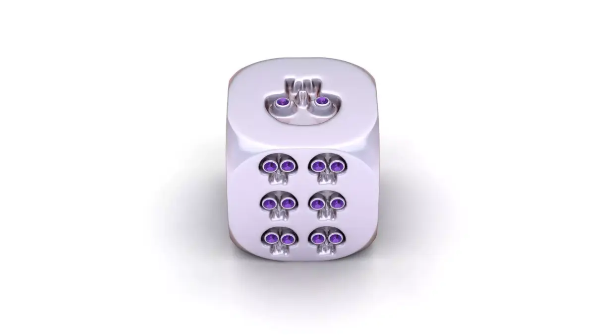 Roll in style with this edgy and luxurious gold skull dice, a true fusion of bold attitude and high-end design. Each face of the die is intricately carved with miniature skulls embedded with shimmering round diamonds, creating a dark yet dazzling aesthetic. Made from polished gold with soft rounded edges, this piece doubles as a conversation-starter accessory, art collectible, or high-end gift for risk-takers, gamers, and rockstar souls.