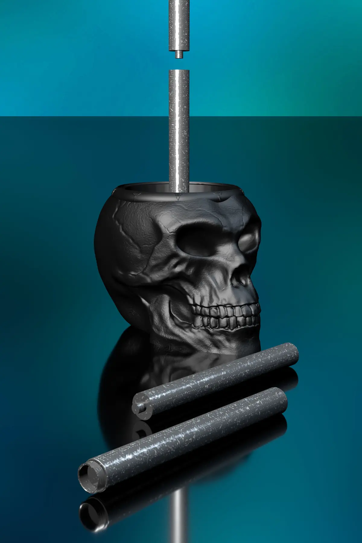 Notes:The skull consists of 3 parts (head, 2 x rod) and may require supports for the teeth and jaw if needed. The rod is secured with a twist-lock mechanism.