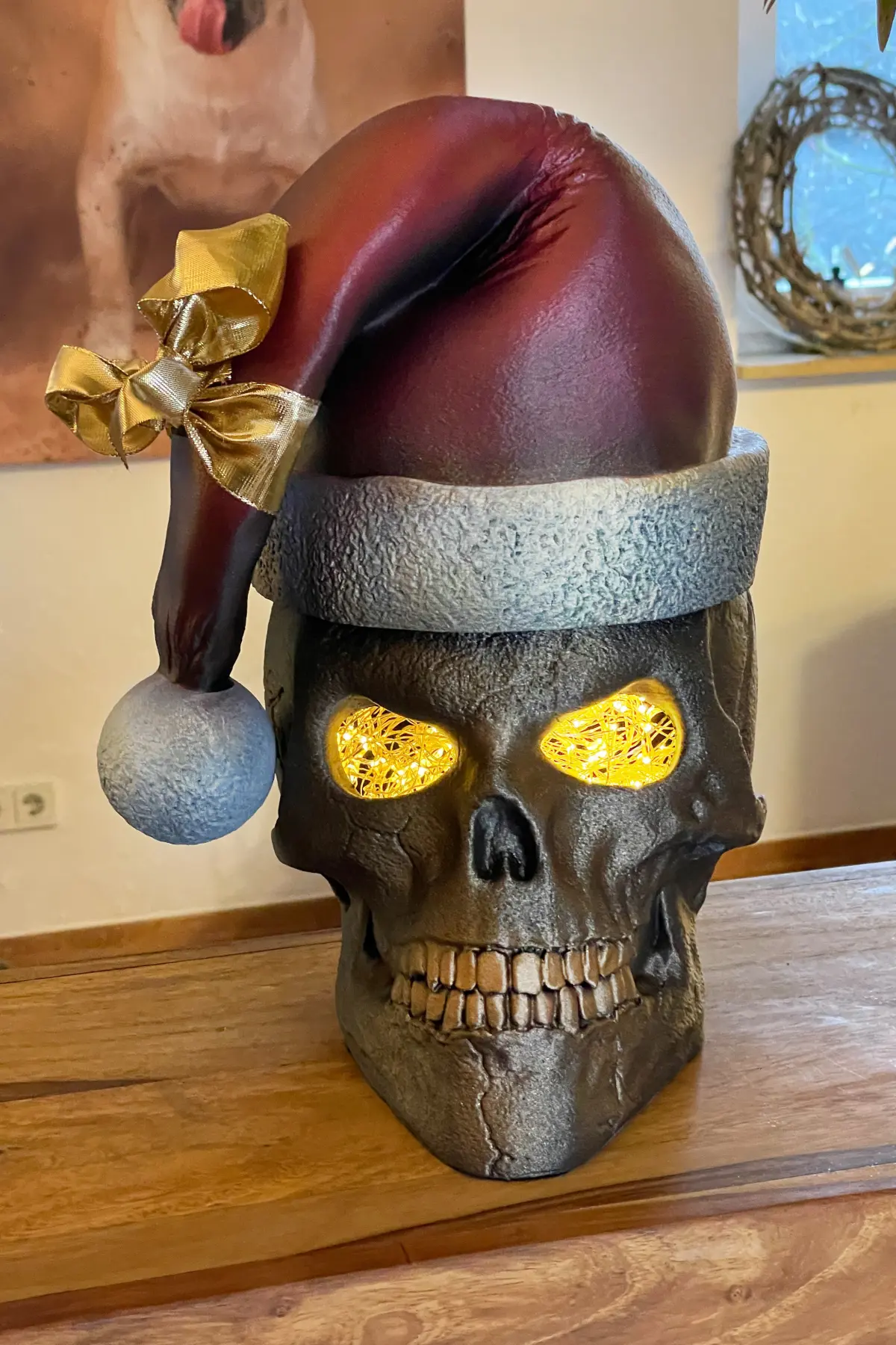 Skull with Christmas cupHollow inside Eyes are open and can be illuminated from inside3D model - Print fileHigh-polygon