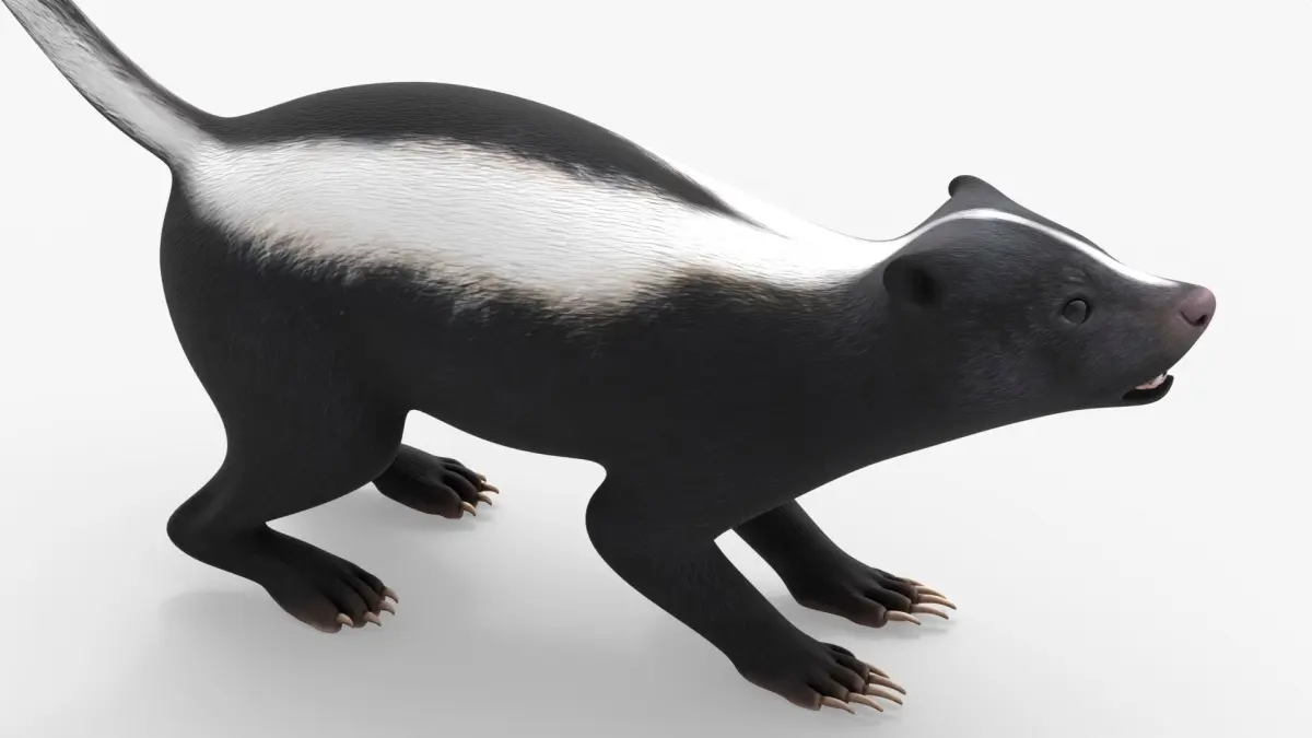 Skunk Animal Animated Rigged for Blender is a three-dimensional model of cute and funny skunk, which is a small omnivore mammal with distinct black and white stripes.