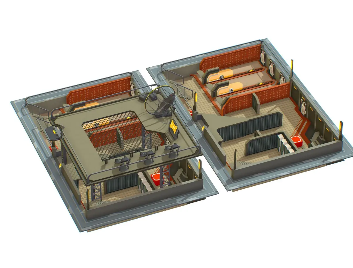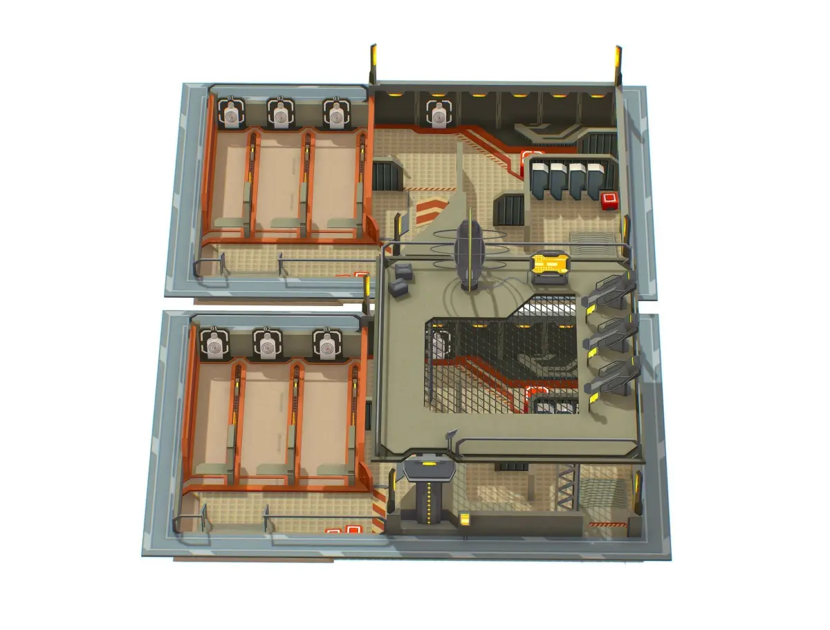 sky fi isometrical shooting room shelter hangar Low-poly 3D model