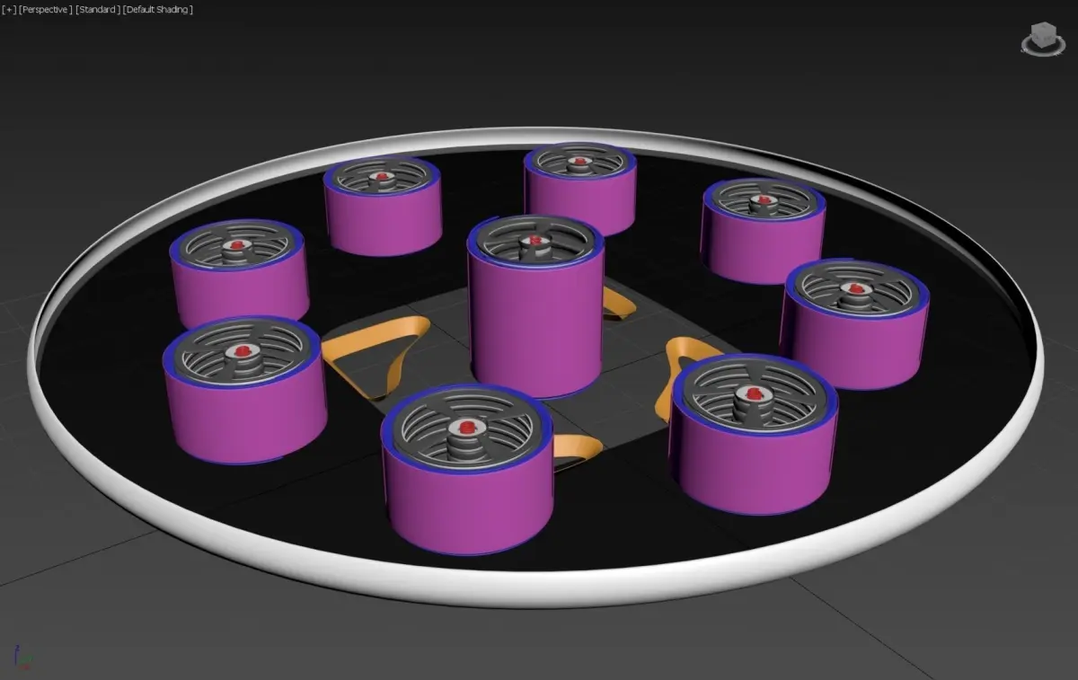 Sky Jet Ski, Designed to be Electrogravitically lifted, forgot to model in a holder ring for 8 or 16 batteries actually, darn.
