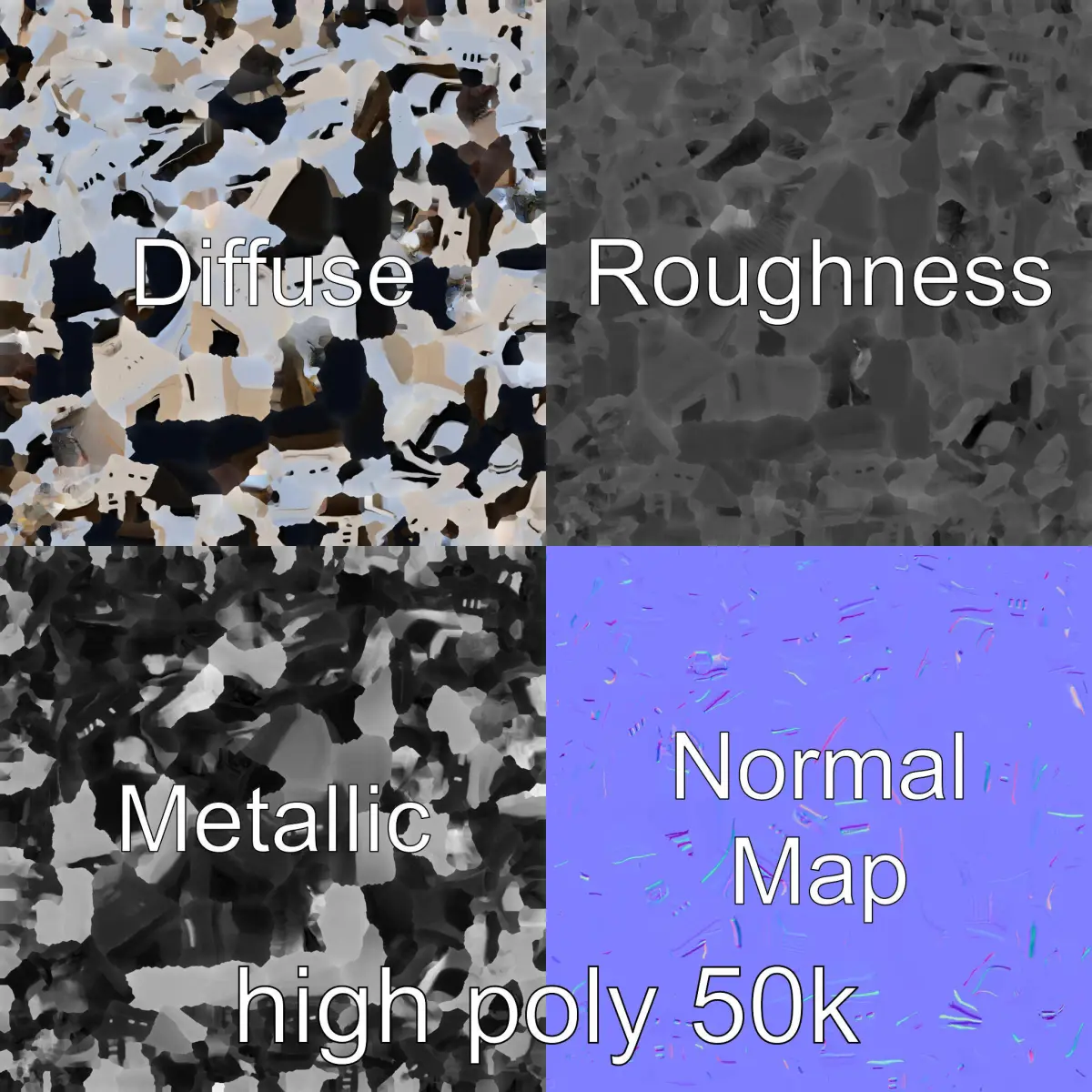 The model's textures are PBR, Diffuse, NormalMap, and reflection/roughness/metallic, suitable for any modern rendering engine. All models are accurately unwrapped and have no overlapping UV. All textures are 4096*4096 in size.