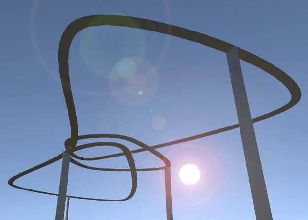 Long "legs" as separate objects included. Move them where you want and "stick" the whole track into your terrain, clouds or whatever you want. Remove them if you have flying islands for support :)