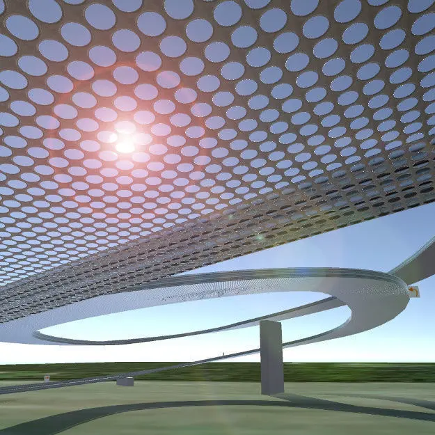 Long "legs" as separate parts are included. Move them where you want and "stick" the whole track into your terrain, clouds or whatever you want. Remove them if you have flying islands for support :)