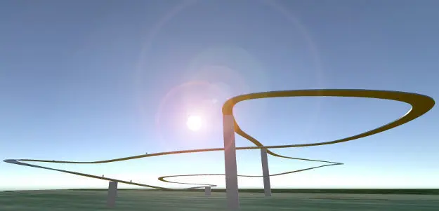 Long "legs" as separate parts are included. Move them where you want and "stick" the whole track into your terrain, clouds or whatever you want. Remove them if you have flying islands for support :)