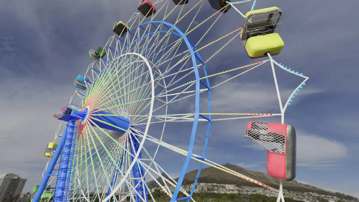 The Skydiver Ride is a fully animated, game-engine–ready 3D model of the classic amusement park attraction originally manufactured by Chance Rides between 1965 and 1987. This model accurately recreates the Skydiver’s signature structure: passenger cars mounted on a circular frame (similar to a Ferris wheel) that rotate on a front-to-back axis, delivering a thrilling ride experience.