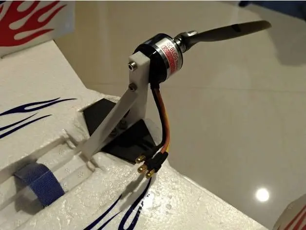 This modified motor mount prevents prop strike when landing on rough surface, also keeps props further away from hand during launch. The angle of thrust is to prevent aircraft from pitching down when throttle is increased aggressively.