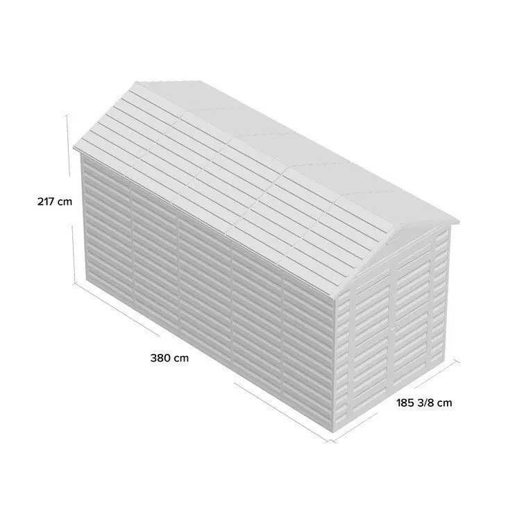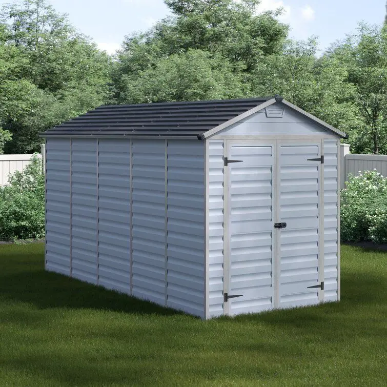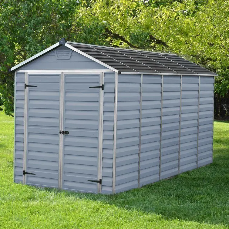 - This apex plastic shed is ideal for storing, organizing, and protecting your outdoor life. This apex plastic shed was developed and built to last; they do not fracture, bend or discolor, and withstand harsh weather conditions such as hail and high temperatures.