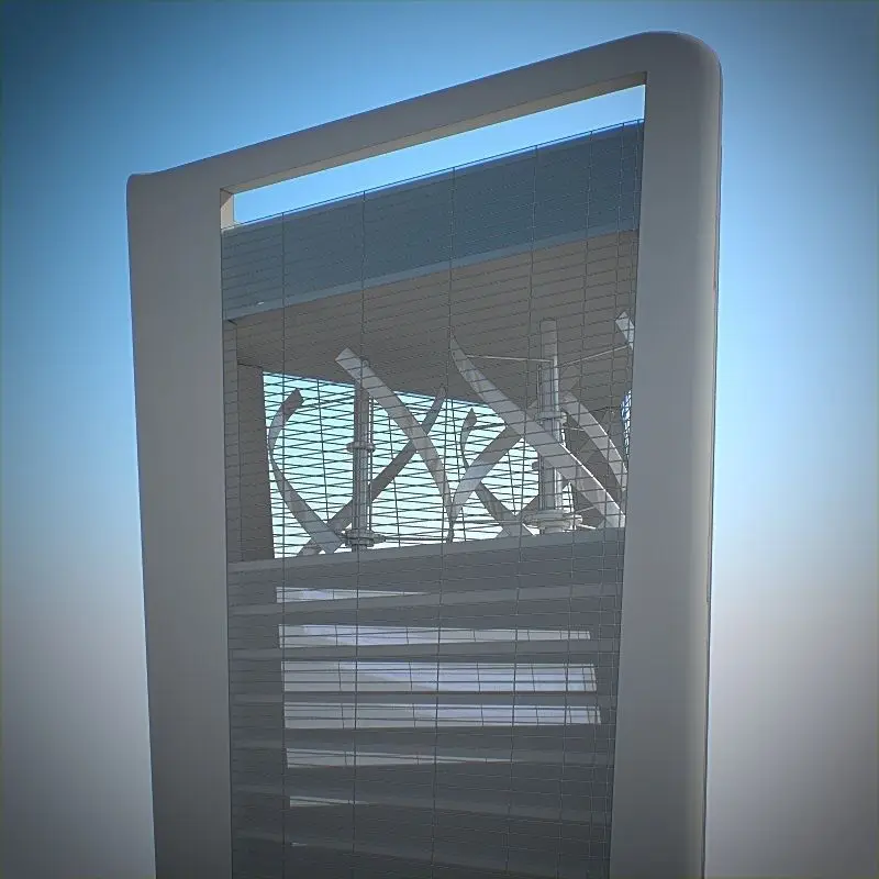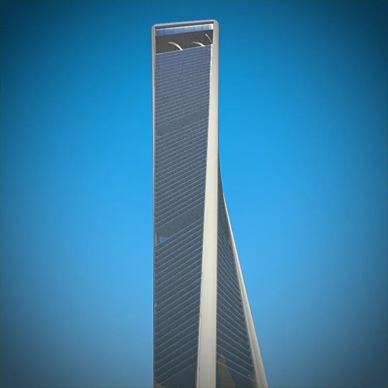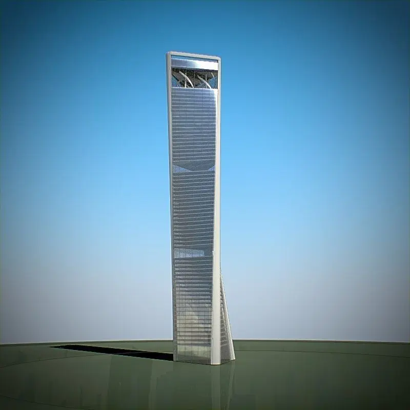 This is real-world-size model of skyscraper building helicoid wind turbines made by professional architect.