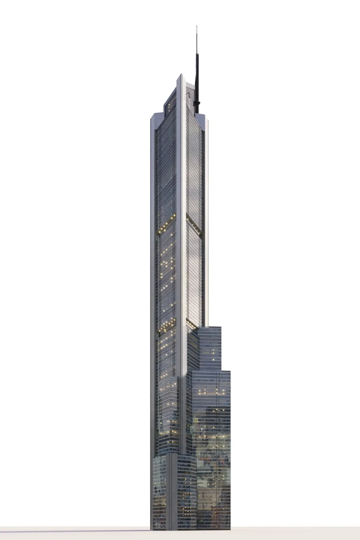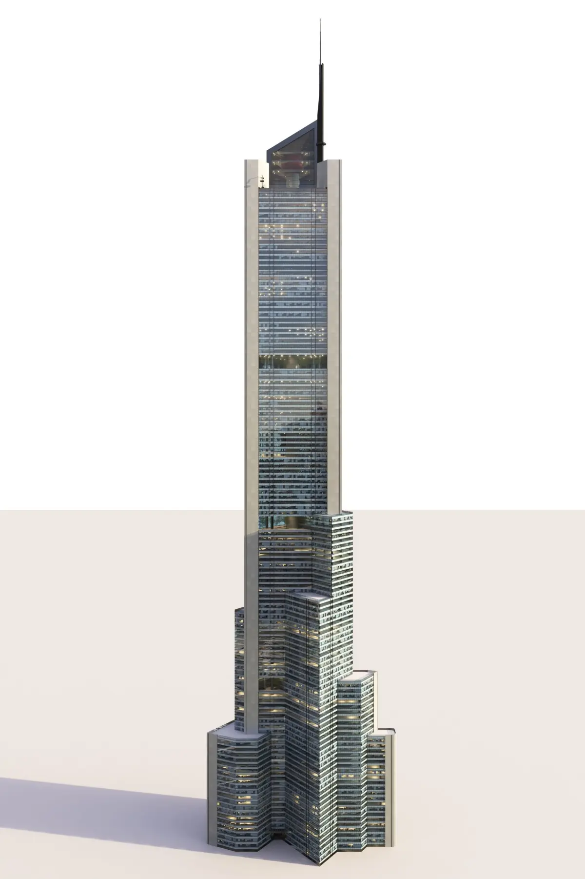 Detailed 3D model of a fictional skyscraper (own design).