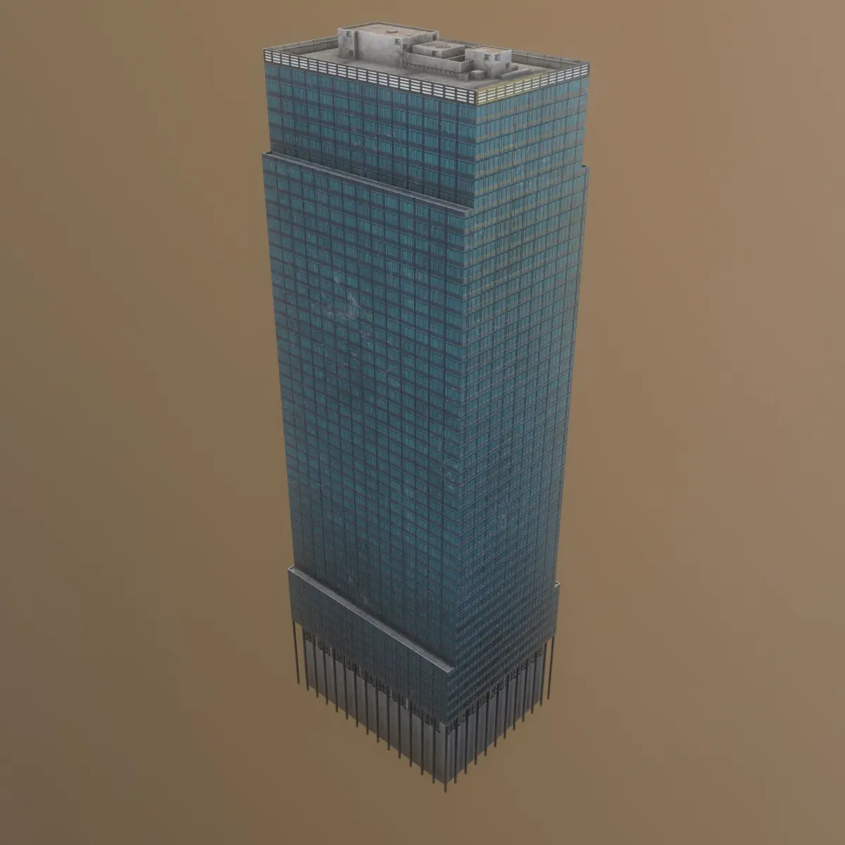 Low poly model of skyscraper, it is PBR with 4k resolutions. This is a low poly model with 1041 polys. This is an ideal opportunity to decorate your scene with an object that will be in other plans, and that would be seen from a long distance. All dimensions are by ratio 1:1. The model has 1 daylight mode and 1 night mode map, metallic, normal, height, roughness.
