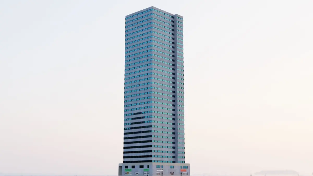 Hight 99,3 X width 34,1 X depth 30,1 meters