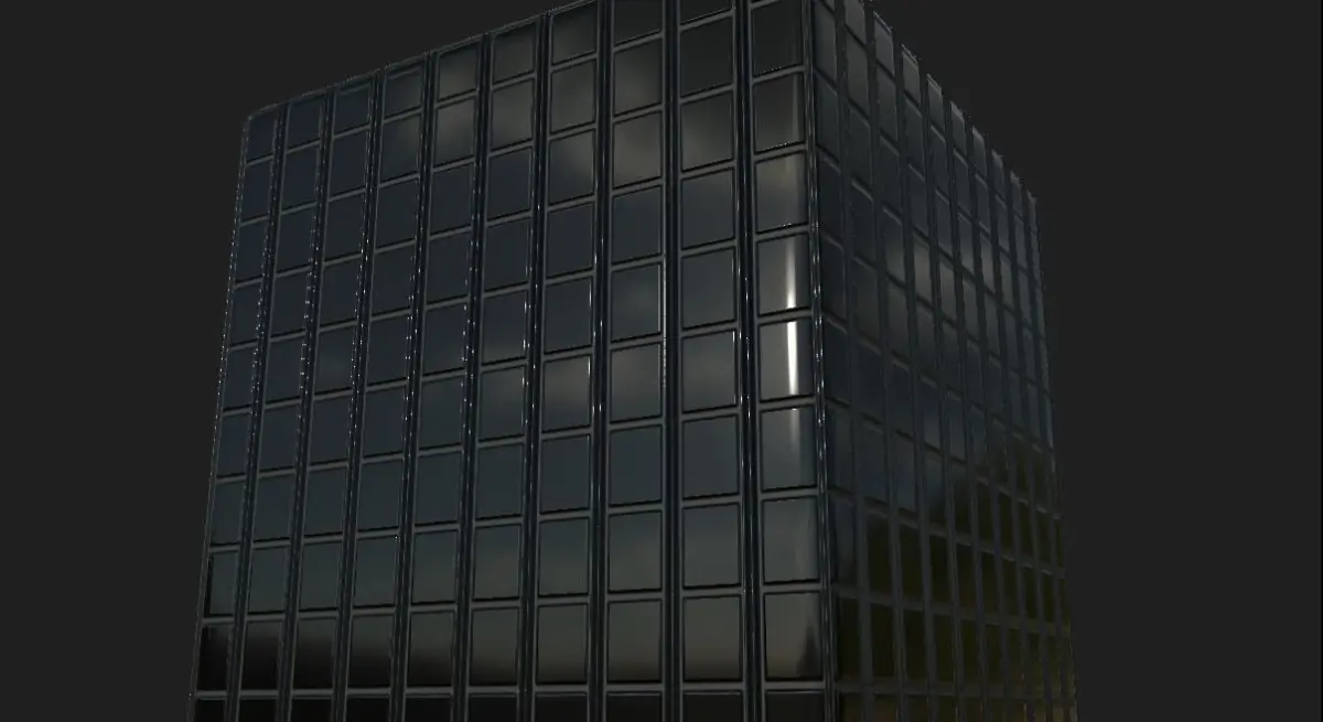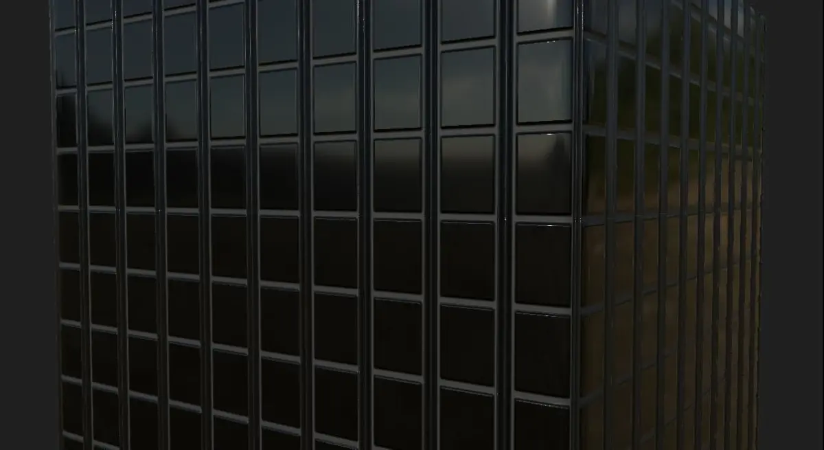 Dark tinted glass skyscraper building facade with modern and sleek semi luxurious semi corporate styling. Suitable for artistic backgrounds, cgi design, architectural rendering, animation, and level design use. Great for hotel design and corporate skyscraper, shopping malls, office halls, generic urban building facade use. RAR file contains base .sbs file and .png occlusion map, albedo map, height map, metallic map, normal map and roughness map images. All data is created at 4096x4096 resolution that can be lowered if necessary. All data is also procedural, that means buildings built with this texture can be horizontally and vertically infinite.
