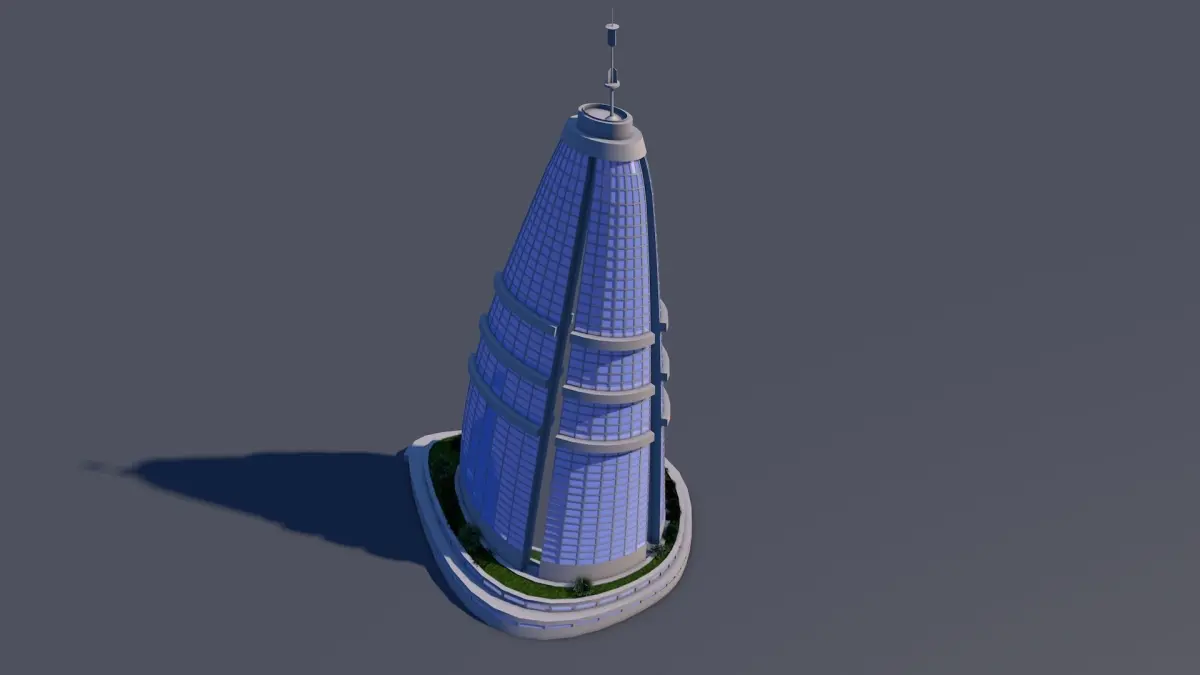 A modern skyscraper designed in Cinema 4D. The trees was made with Baum3D. Conversion to various formats: .c4d, .3ds, .fbx, .stl, .obj.Textures in the .zip folder.