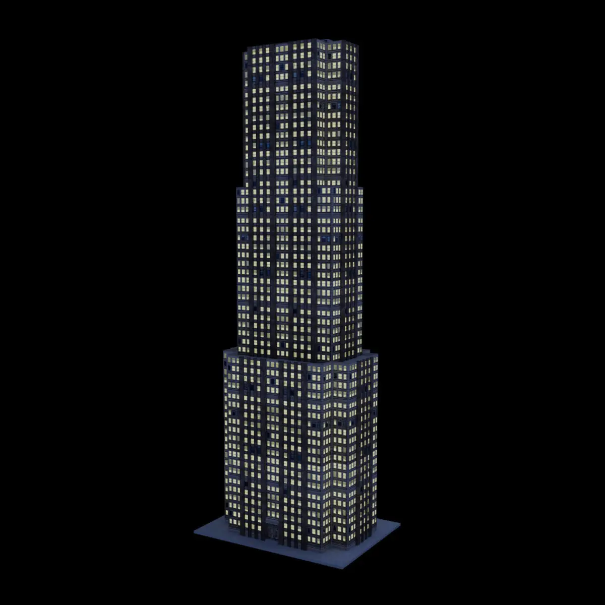 Low poly skyscraper model, excellent for city district projects. Includes color, bump, normal, spec, roughness, metal and emission maps for PBR rendering. I've included a daytime and a nightime model.