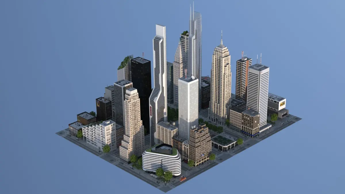 Highly detailed modular city containing detailed buildings, road tiles, street furniture, textures and more.
