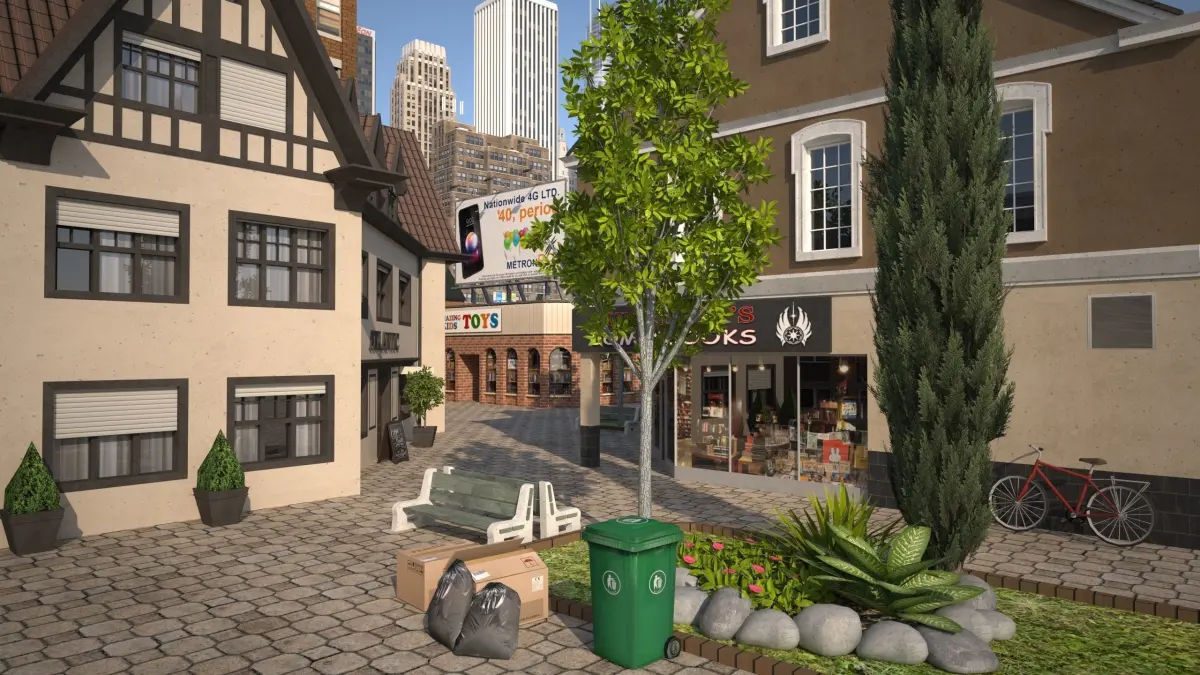 44 detailed buildings; street lights; traffic lights; trash cans; trees and other plants; phone booths; air conditioning units; kiosks/newsstands; bus stops; subway entrances; street signs; seating; satellite dishes; tennis court; superb multi-purpose textures and much more.