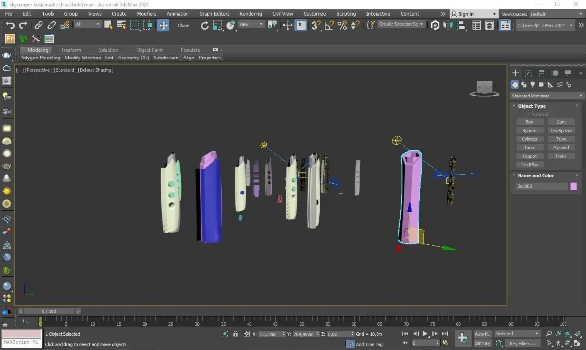 In the 3d Max file, there is a section called help in the layers section.There are objects on the formation process of the building.At the same time, there is a design that you really like on the photoshop file. You can get help from there.