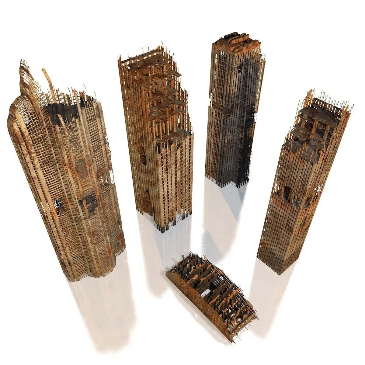 Pack of skyscrapers in ruins for apocalyptic environments, textures are included in high resolution, great realism and detail level, perfect for close-ups, Interiors ready to decorate