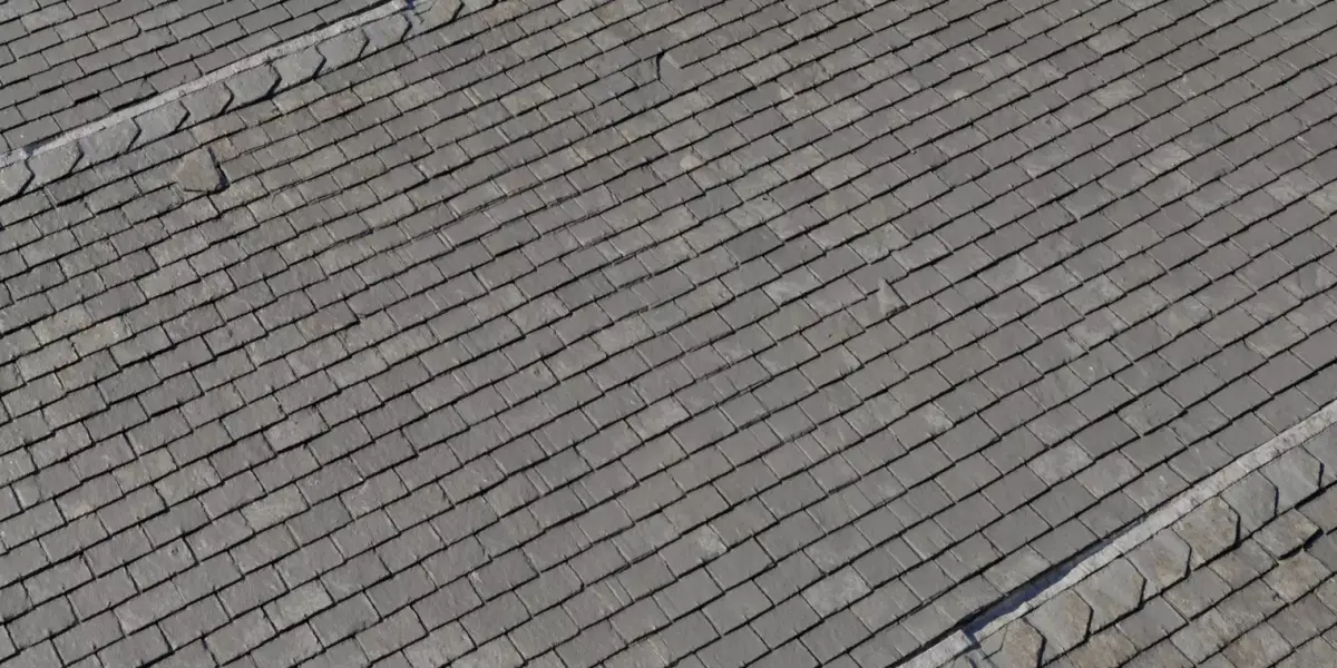 A production‑ready PBR material of traditional hand‑laid slate shingles with organic size variation, chipped edges, and subtle mineral speckle—ideal for castles, cottages, and historic roofs in games, archviz, and film. The texture tiles cleanly over large areas while preserving realistic undulation across courses, with balanced roughness for crisp but restrained specular response at grazing light. Normal and height maps capture layered overlaps, broken corners, and thin mortar lines, enabling convincing parallax/displacement for close‑up hero shots without moiré at mid‑distance. BaseColor is calibrated to neutral gray slate with light weathering, making it grade‑friendly for cooler blue slates or warmer brown variants via color correction or masks. Delivered at 4K with consistent file naming, the set is drop‑in ready for Blender, Unreal Engine, Unity HDRP/URP, 3ds Max, and Maya across metallic/roughness and specular workflows. Perfect for period sets, fantasy towns, museums, and modular roofing kits demanding authenticity and performance.