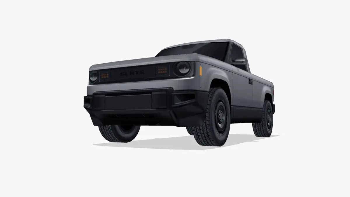 The car:“Slate Truck will be produced as a pickup truck. The company will offer accessories to convert the vehicle into a 3-door, 5-seat SUV with a traditional squared-off roof or a fastback roof.”