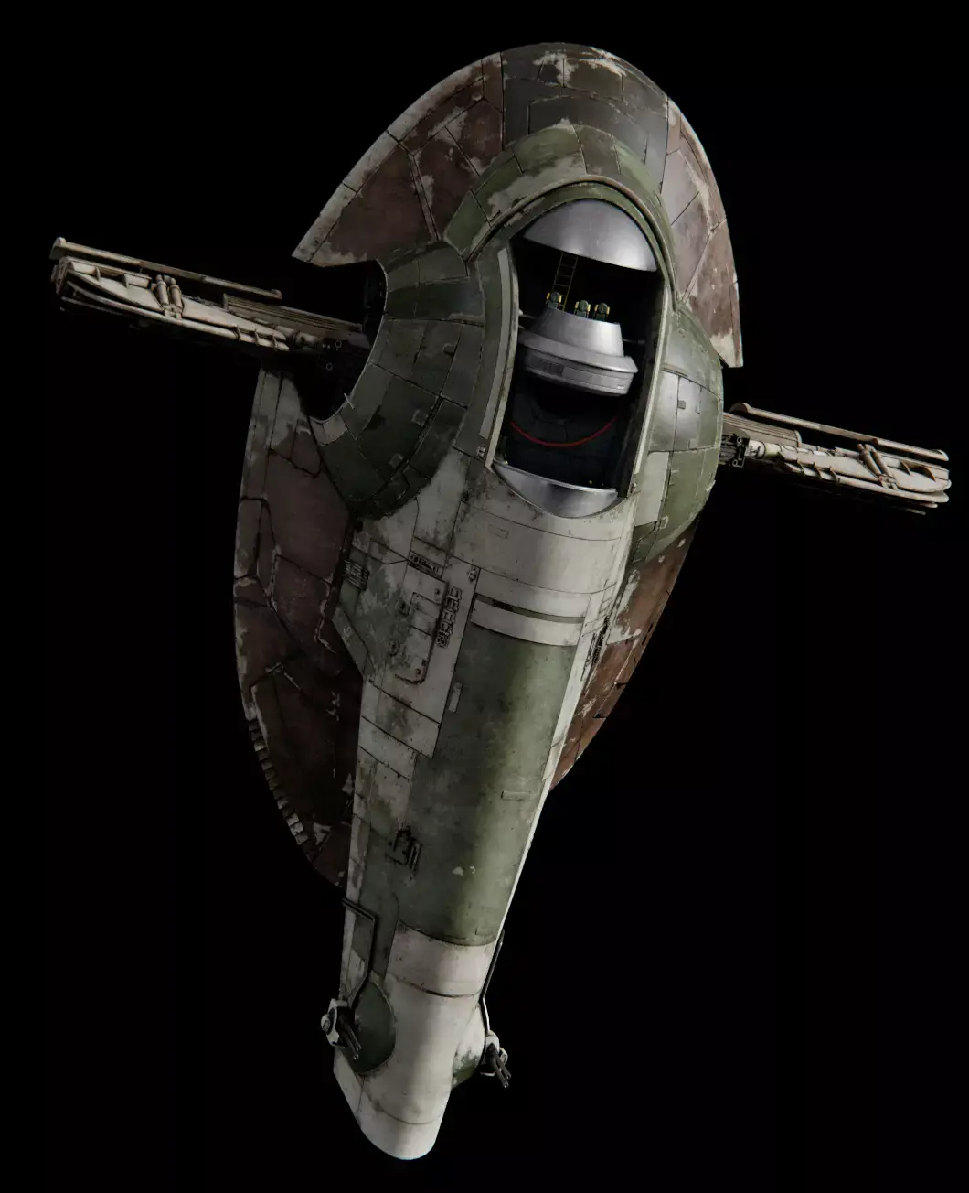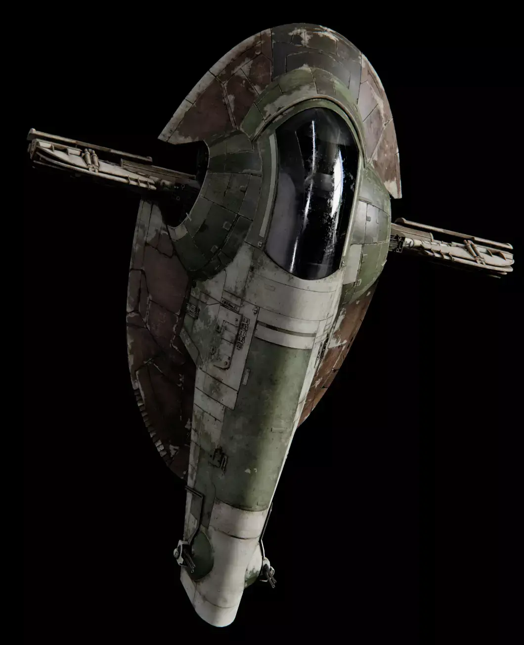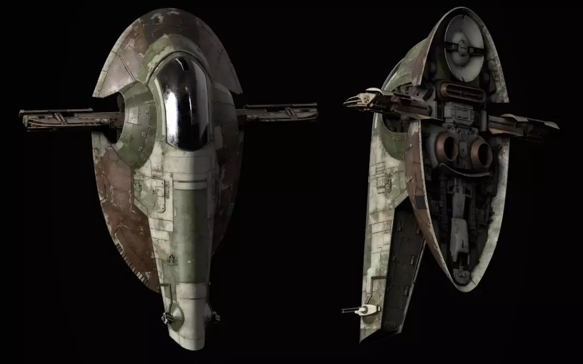 Slave I, also spelled Slave One and also known as Boba Fett's starship and Jango Fett's starship, was a modified Firespray-31-class patrol and attack craft used by the infamous Mandalorian bounty hunter Jango Fett before the Clone Wars and later his unaltered cloned son, Boba Fett, just prior to the Fall of the Republic and during the reign of the Galactic Empire. The ship in its original form was produced by a subsidiary company of Kuat Drive Yards, based on the planet Kuat.I've made this model from scratch to practice texturing realistic objects. I'm currently using this to recreate some of the mandalorian scenes on youtube!