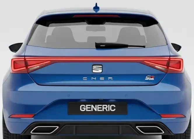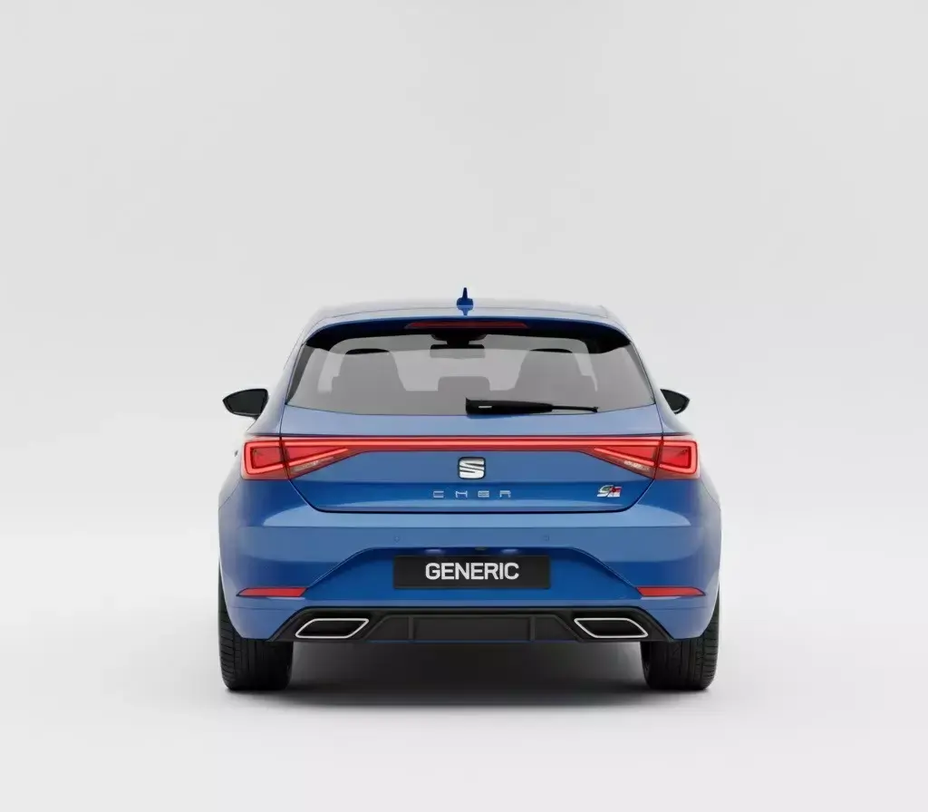 A modern, sporty hatchback in a vibrant, glossy blue finish, viewed directly from the front. The car features a bold and assertive design, characterized by sharp lines and a wide stance. Its hexagonal grille is prominently centered, with the word GENERIC distinctly displayed on a lower bar, suggesting a conceptual or placeholder identity. Above the main grille, a small SG logo adds a touch of subtle branding.