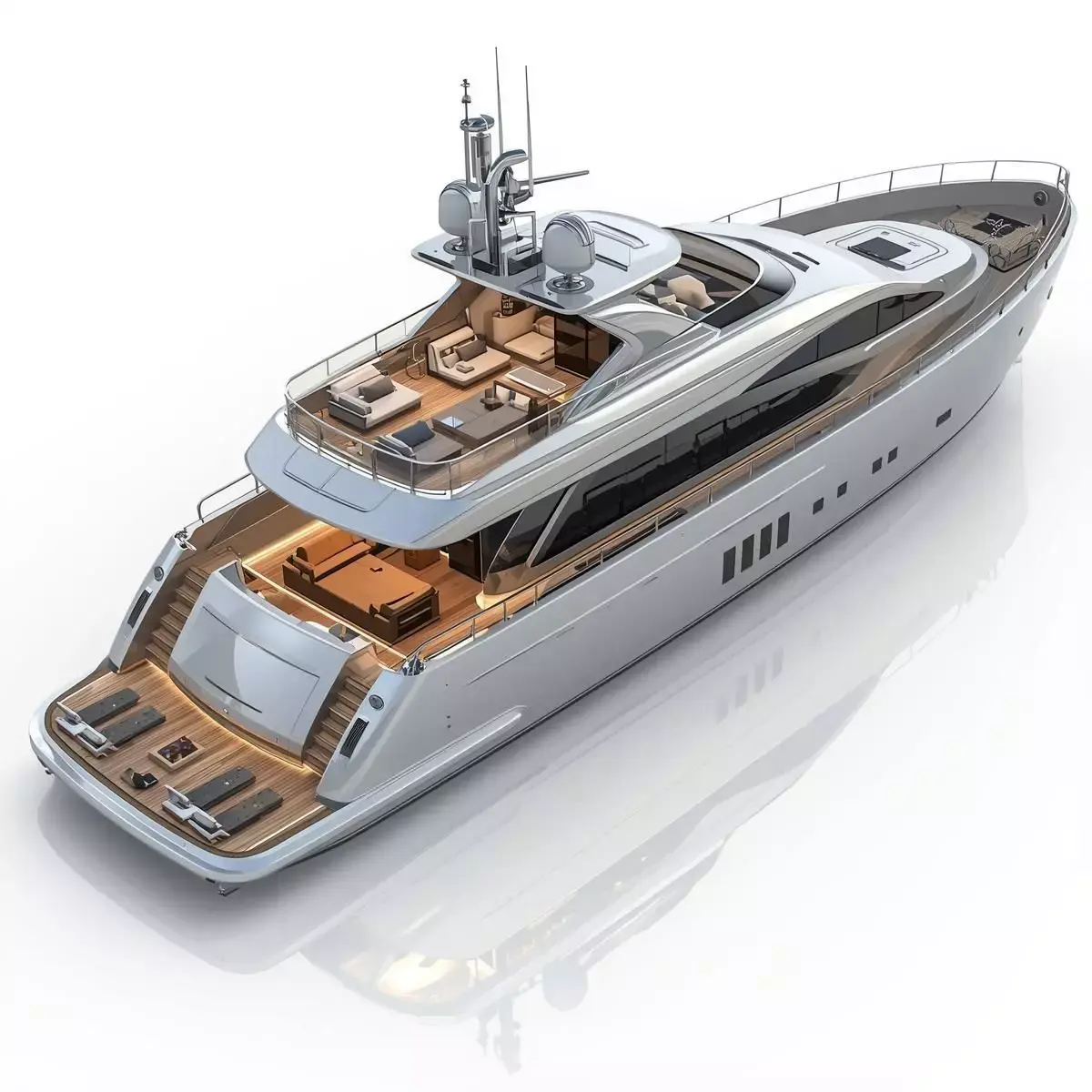 TagsYachtMotorYachtLuxuryFlybridgeBoatVesselShipOceanSeaModernContemporarySleekSilverWhiteTeakMarineTransportGameAssetPropArchitecturalRenderNautical