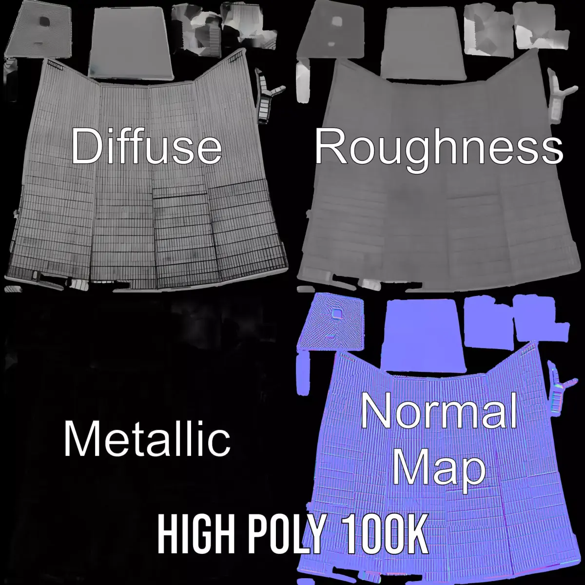The model's textures are PBR, Diffuse, NormalMap, and reflection/roughness/metallic, which are suitable for any modern rendering engine. All models accurately unwrapped and have no overlapping UV.