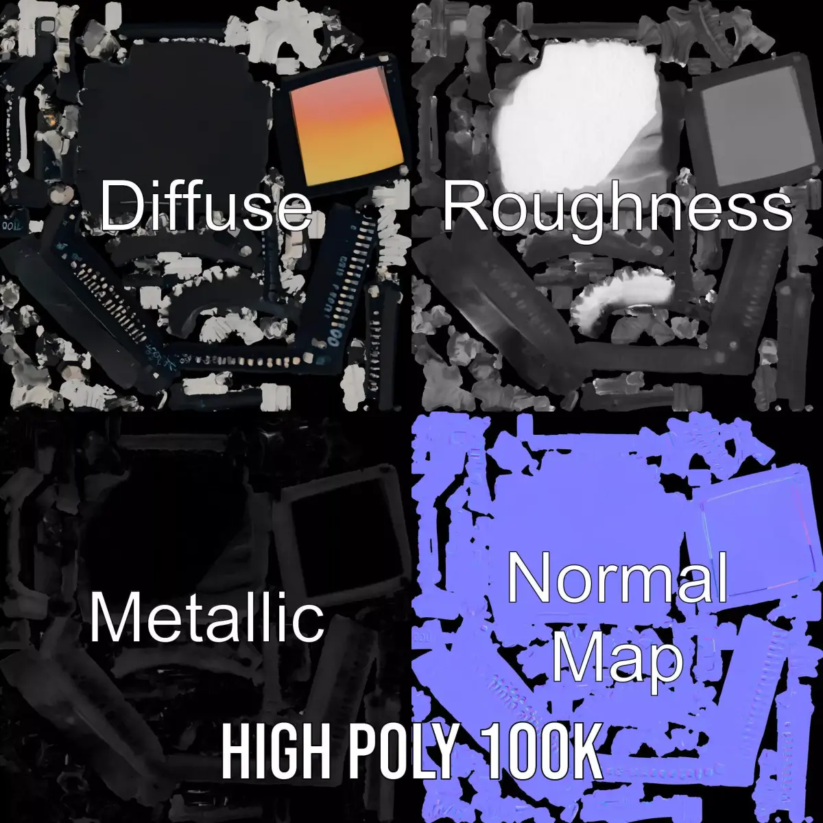 This sleek microchip model features a detailed and realistic design perfect for educational and engineering projects. Each model has 3 levels of detail: low-poly (1000 triangles for mobile), middle-poly (10,000 triangles for environment), and high-poly (100,000 triangles), allowing for versatile use in production rendering (such as 3ds Max, Maya, Cinema 4D, Blender, Vray/Corona/Cycles, and all other software), game engines (Unity and Unreal compatible), and interactive presentations, providing a choice of detail based on the LOD System principle. Ideal for simulations, technology showcases, and detailed product displays. The model's textures are PBR, Diffuse, NormalMap, and reflection/roughness/metallic, suitable for any modern rendering engine. All models are accurately unwrapped with no overlapping UVs. All textures are 4096x4096 in size. If you enjoyed this model, please like and leave a comment!