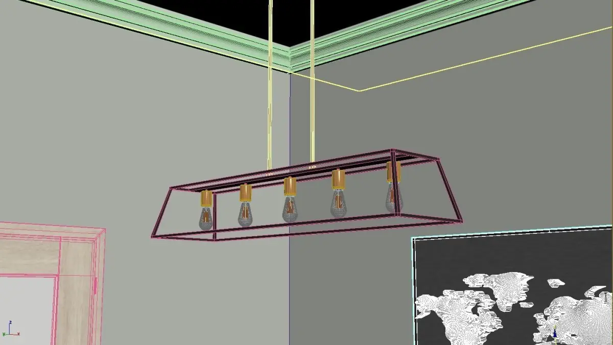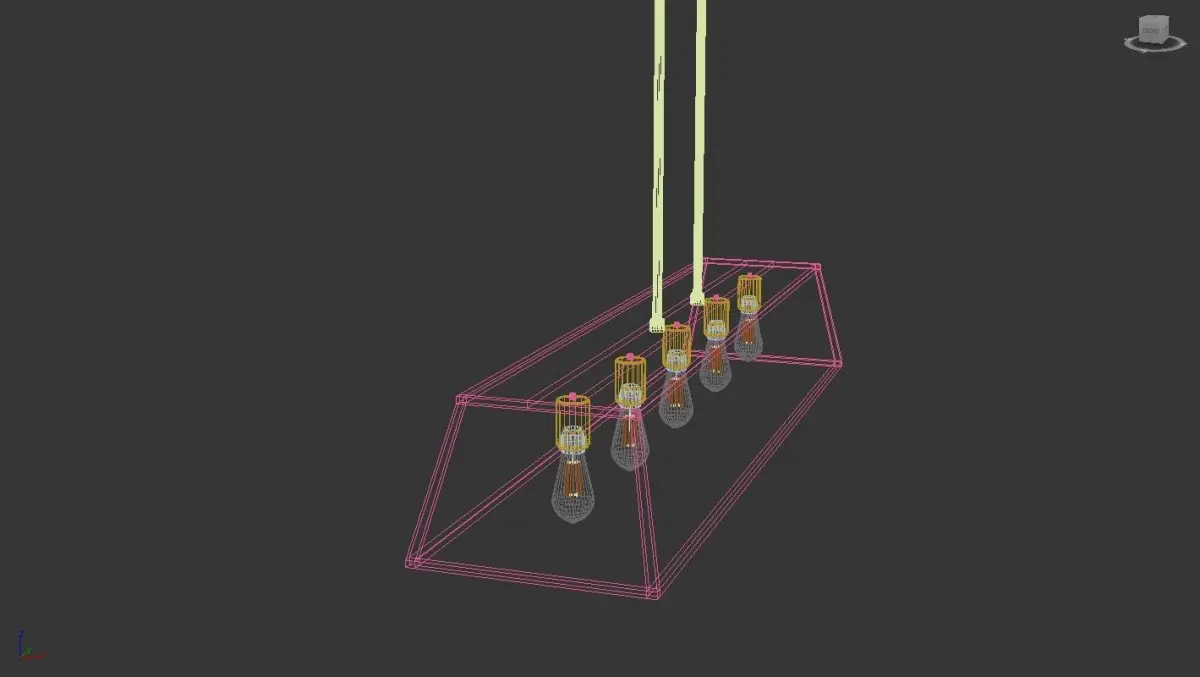 The clean, airy cage design of this geometric open frame island chandelier is constructed without glass. The visible bare bulbs reflect a simple vintage industrial style. The use of mixed finishes on the metal frame add a sophisticated element to the sleek design. This island chandelier is perfect for kitchen islands, restaurant bars, home bars, and game rooms; use as an updated pool table light or make an eclectic statement by hanging over a farm table.
