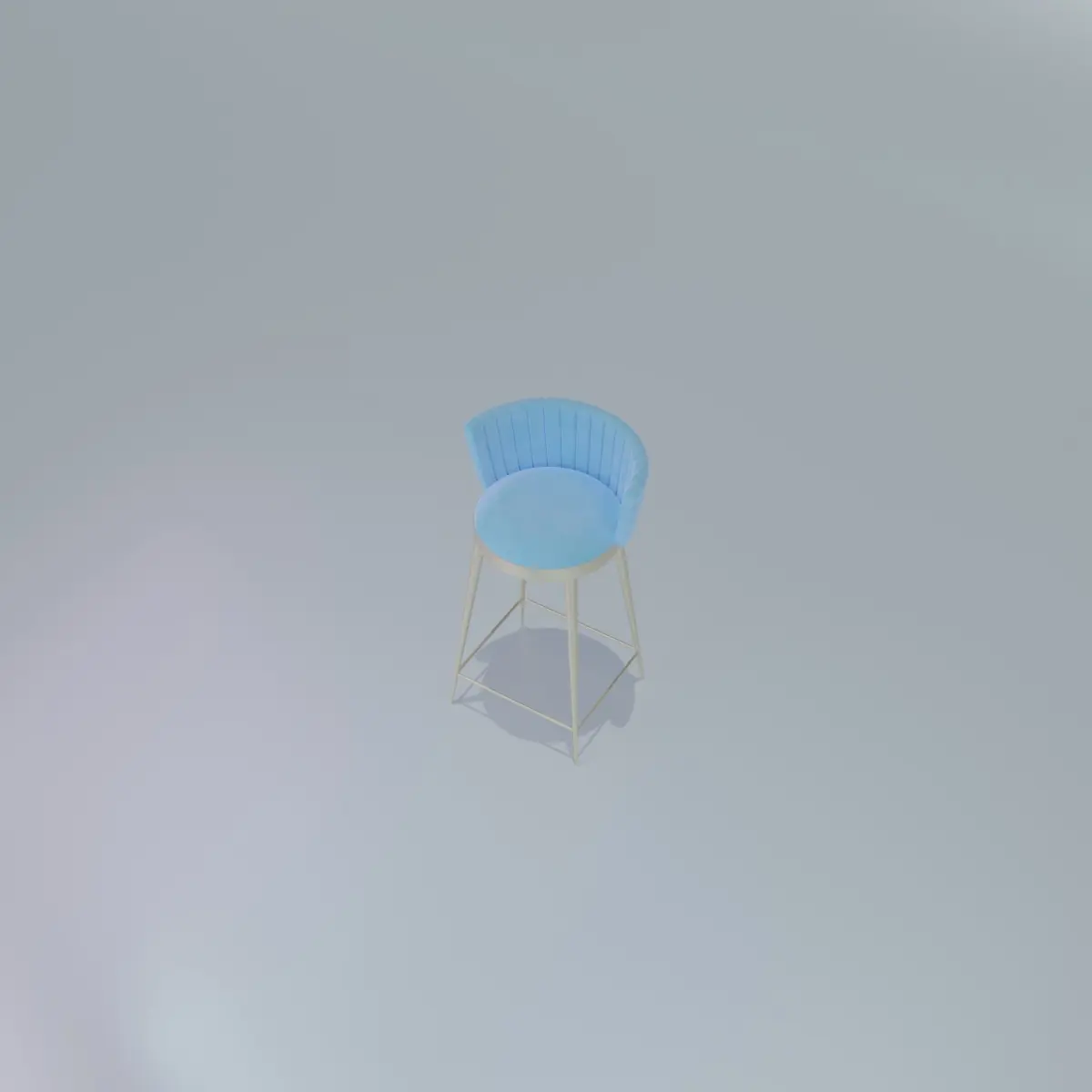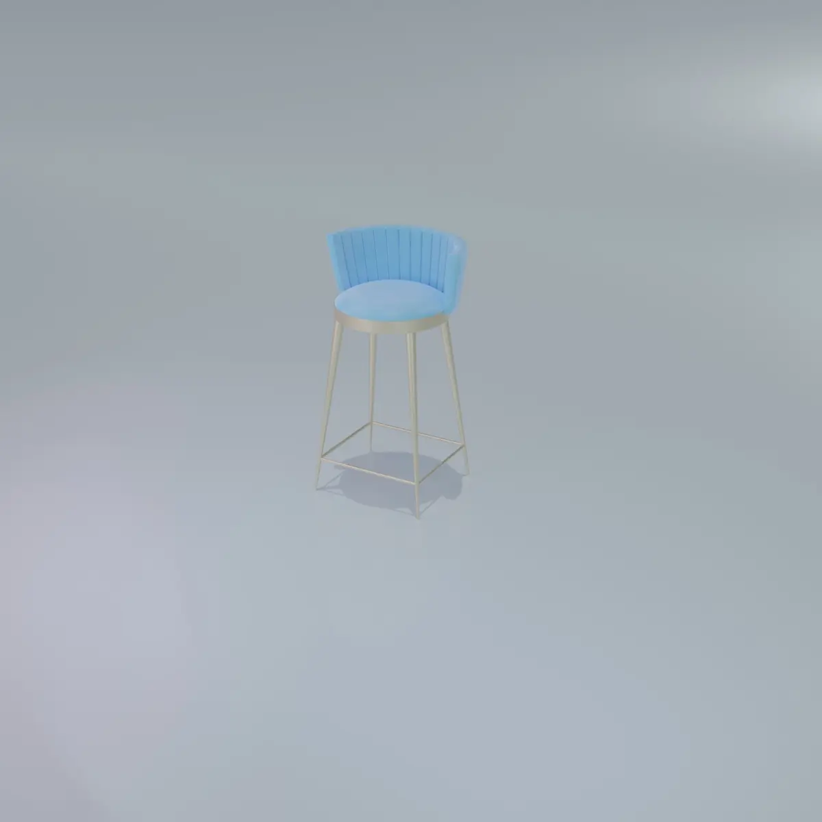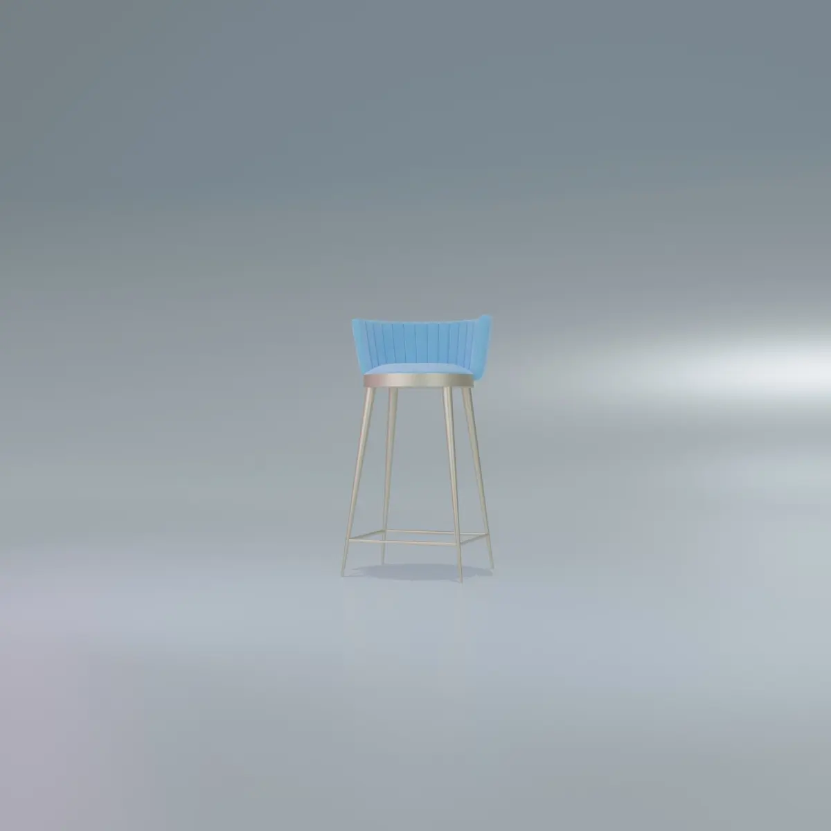 This 3D model showcases a sleek, modern bar stool designed for both style and comfort. It features a light blue cushioned seat with a matching curved backrest, providing ample support. The stool stands on elegant, slender gold legs, which add a touch of sophistication. The footrest offers additional comfort and stability, making it an ideal choice for any contemporary kitchen or bar setting. This bar stool combines aesthetic appeal with practical design, making it a perfect addition to your home or commercial space.
