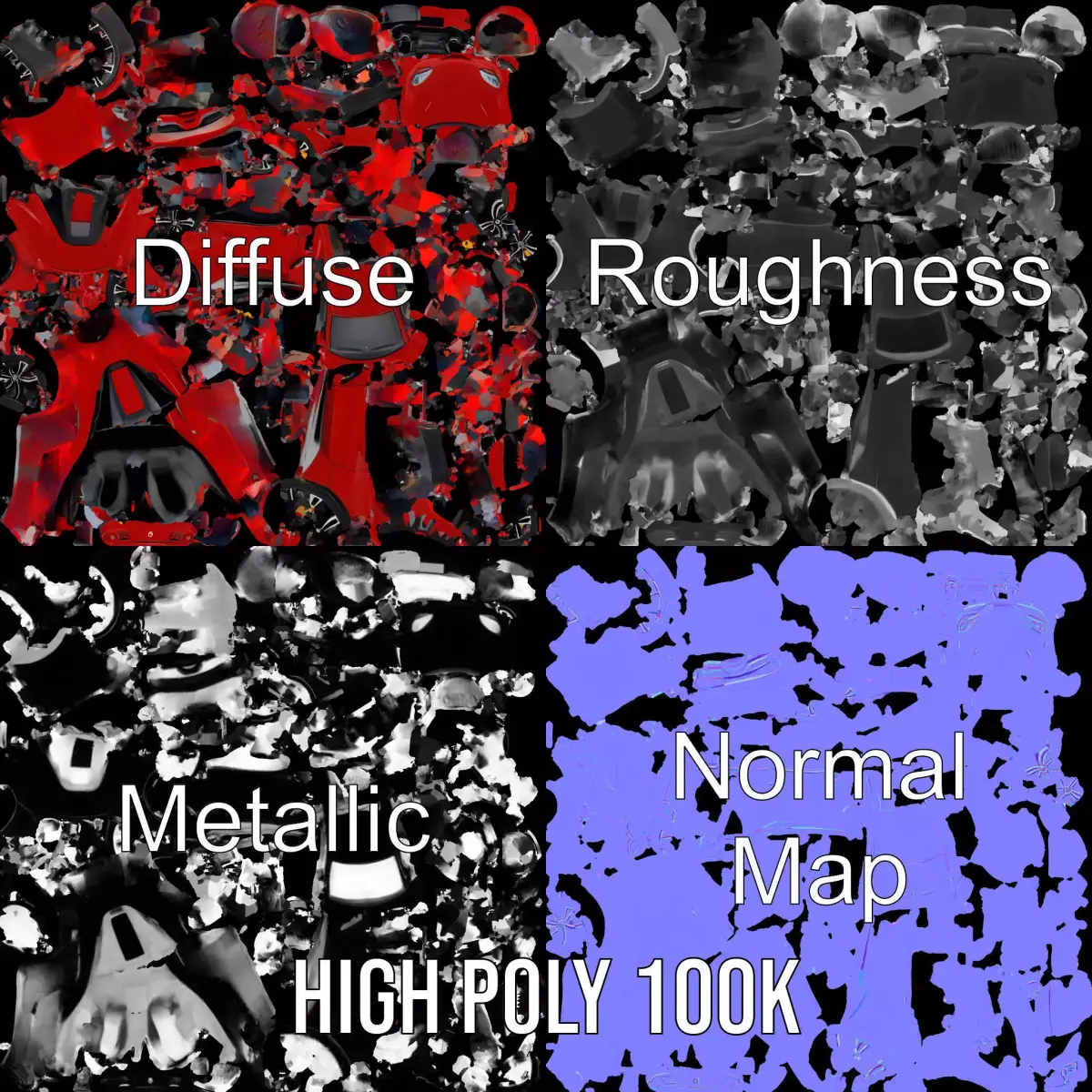 This 3D model captures the elegance and speed of a sleek red sportscar. Its aerodynamic design and glossy finish make it perfect for racing scenes or as a standout element in architectural visualizations. Each model has 3 levels of detail: low-poly (1000 triangles for mobile), middle-poly (10,000 triangles for environment), and high-poly (100,000 triangles), which allows for the use of this model in production rendering (such as 3ds Max, Maya, Cinema4D, Blender, Vray/Corona/Cycles and all others), game engines (Unity and Unreal compatible), and interactive presentations, providing a choice of detail based on the LOD System principle. The model's textures are PBR, Diffuse, NormalMap, and reflection/roughness/metallic, which are suitable for any modern rendering engine. All models accurately unwrapped and have no overlapping UV. Textures are 4096*4096 in size. If you like this model, please leave a comment and a like.