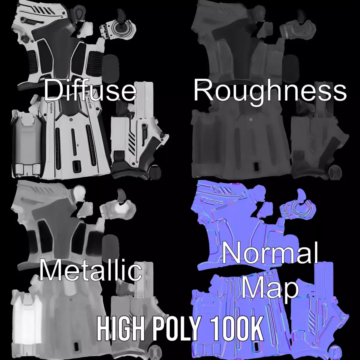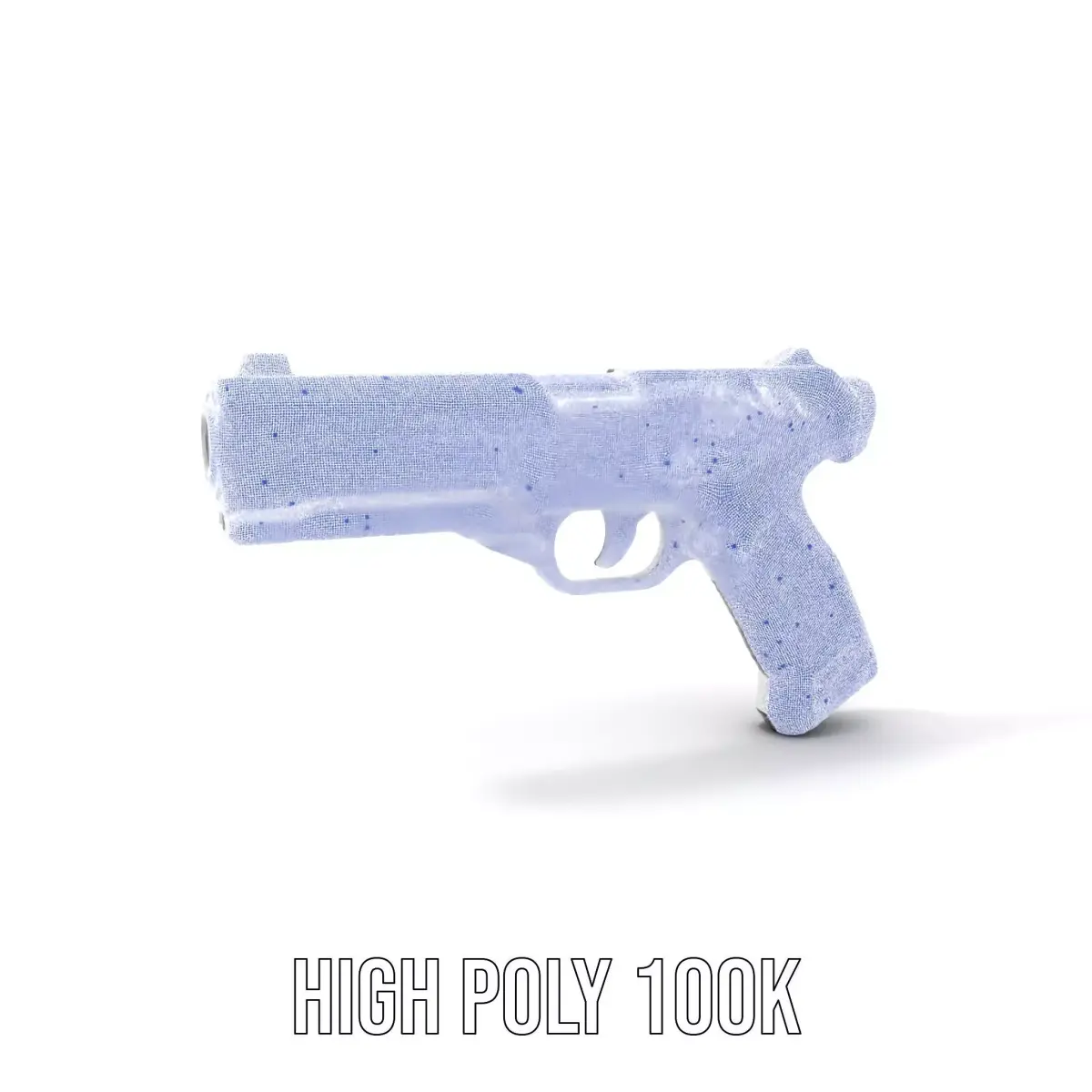 This Sleek Silver Handgun model pack is designed for use in high-tech environments, futuristic settings, and action-packed scenarios. Each model has 3 levels of detail: low-poly (1000 triangles for mobile), middle-poly (10,000 triangles for environment), and high-poly (100,000 triangles), which allows for the use of this model in production rendering (such as 3ds Max, Maya, Cinema4D, Blender, Vray/Corona/Cycles and all others), game engines (Unity and Unreal compatible), and interactive presentations, providing a choice of detail based on the LOD System principle. The model's textures are PBR, Diffuse, NormalMap, and reflection/roughness/metallic, which are suitable for any modern rendering engine. All models accurately unwrapped and have no overlapping UV. All textures are 4096*4096 in size. Perfect for video games, animations, and VR experiences. Please like and leave a comment if you enjoyed this model!