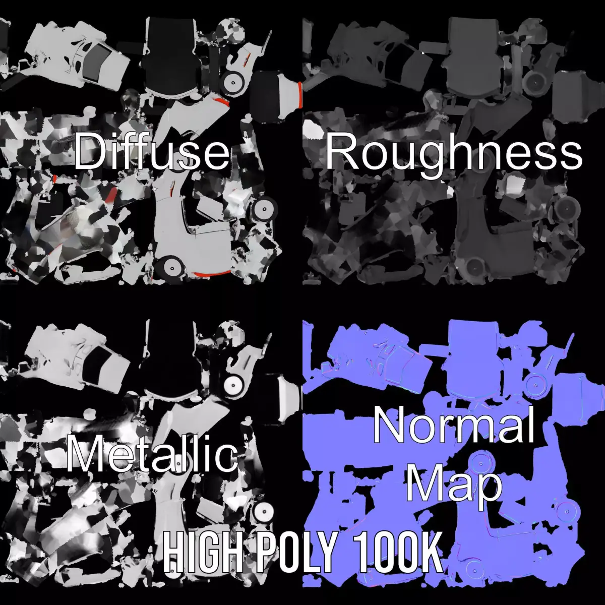 This sleek silver sports car model features a dynamic and aerodynamic design, perfect for any virtual environment requiring high-speed elegance. It’s suitable for use in racing games, virtual showrooms, and photorealistic rendering projects. Each model has 3 levels of detail: low-poly(1000 triangles for mobile), middle-poly(10 000 triangles for environment), and high-poly(100 000 triangles), which allows for the use of this model in production rendering(such as 3ds Max, Maya, Cinema4D, Blender, Vray/Corona/Cycles, and all others), game engines (Unity and Unreal compatible), and interactive presentations, providing a choice of detail based on the LOD System principle. The model's textures are PBR, Diffuse, NormalMap, and reflection/roughness/metallic, which are suitable for any modern rendering engine. All models are accurately unwrapped and have no overlapping UVs. All textures are 4096*4096 in size. Please like and leave a comment if you enjoyed this model.