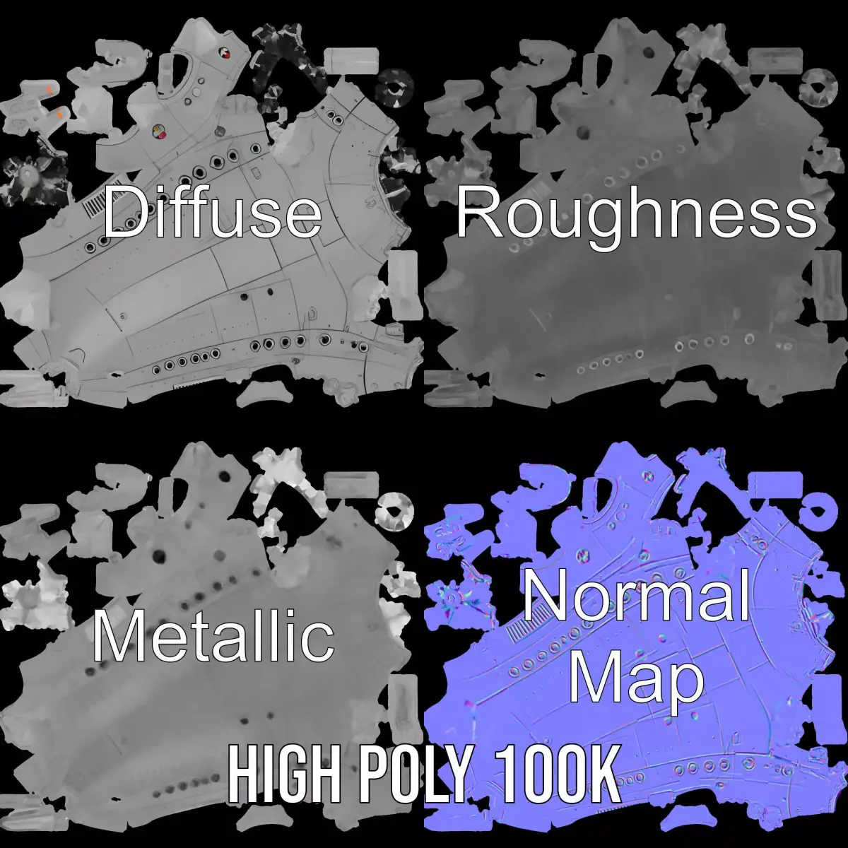 This detailed 3D model pack features a sleek submarine design, perfect for maritime-themed projects or historical recreations. Each model has 3 levels of detail: low-poly (1000 triangles for mobile), middle-poly (10 000 triangles for environment), and high-poly (100 000 triangles), which allows for the use of this model in production rendering (such as 3ds Max, Maya, Cinema4D, Blender, Vray/Corona/Cycles and all other), game engines (Unity and Unreal compatible), and interactive presentations, providing a choice of detail based on the LOD system principle. The model's textures are PBR, Diffuse, NormalMap, and reflection/roughness/metallic, suitable for any modern rendering engine. All models are accurately unwrapped and have no overlapping UVs. All textures are 4096*4096 in size. Ideal for visualizations, cinematic scenes, or educational tools. Please like and leave a comment if you enjoyed this model.