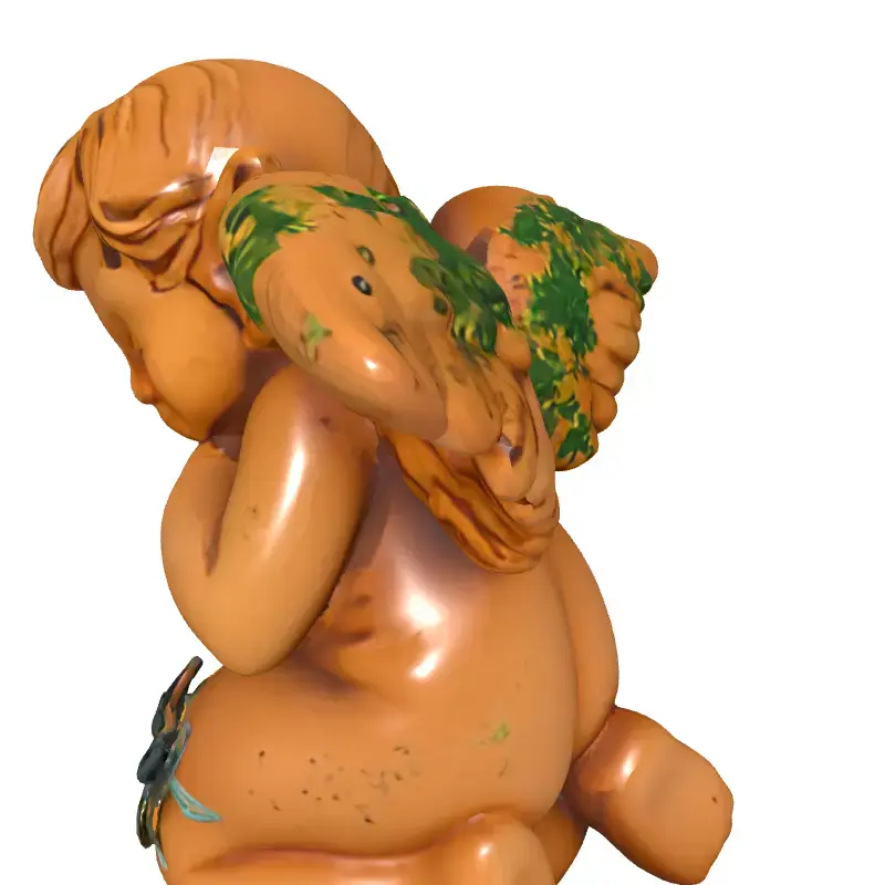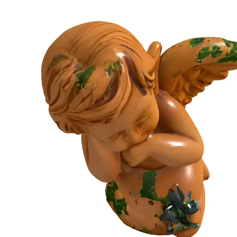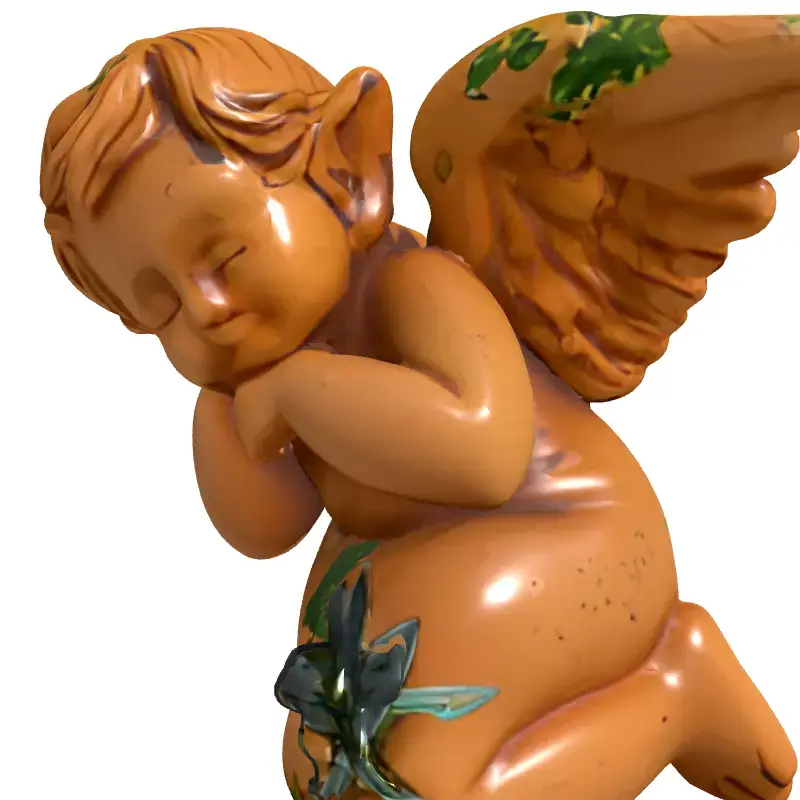 This highly detailed 3D model presents a serene sleeping cherub, crafted in the classic style of a terracotta garden statue. The figure embodies peace and innocence, depicted with closed eyes and delicate wings, subtly weathered with patches of green moss and adorned with a small, elegant white flower on its lower back, suggesting age and natural integration into its surroundings. This versatile asset is perfect for a wide range of creative projects, including enhancing virtual garden scenes, adding a touch of classical charm to architectural visualizations, or serving as a contemplative element in digital art compositions. Its robust design also makes it an excellent candidate for 3D printing, allowing for tangible reproductions. Optimized for both real-time applications such as game development and AR/VR experiences, as well as high-quality static renderings, this model boasts clean, efficient topology and is fully UV unwrapped. It comes complete with PBR textures to ensure a realistic material appearance across various rendering engines. The model supports multiple industry-standard file formats, including GLB, OBJ, STL, ABC, DAE, FBX, USD, and PLY, ensuring broad compatibility and ease of integration into any workflow. Whether you're building an ancient ruin, a peaceful park, or a stylized fantasy environment, this cherub model will add character and depth to your scenes.