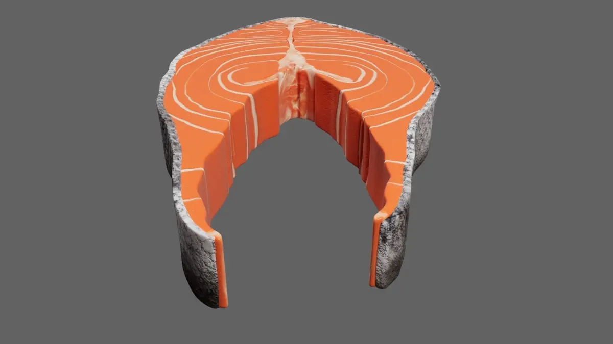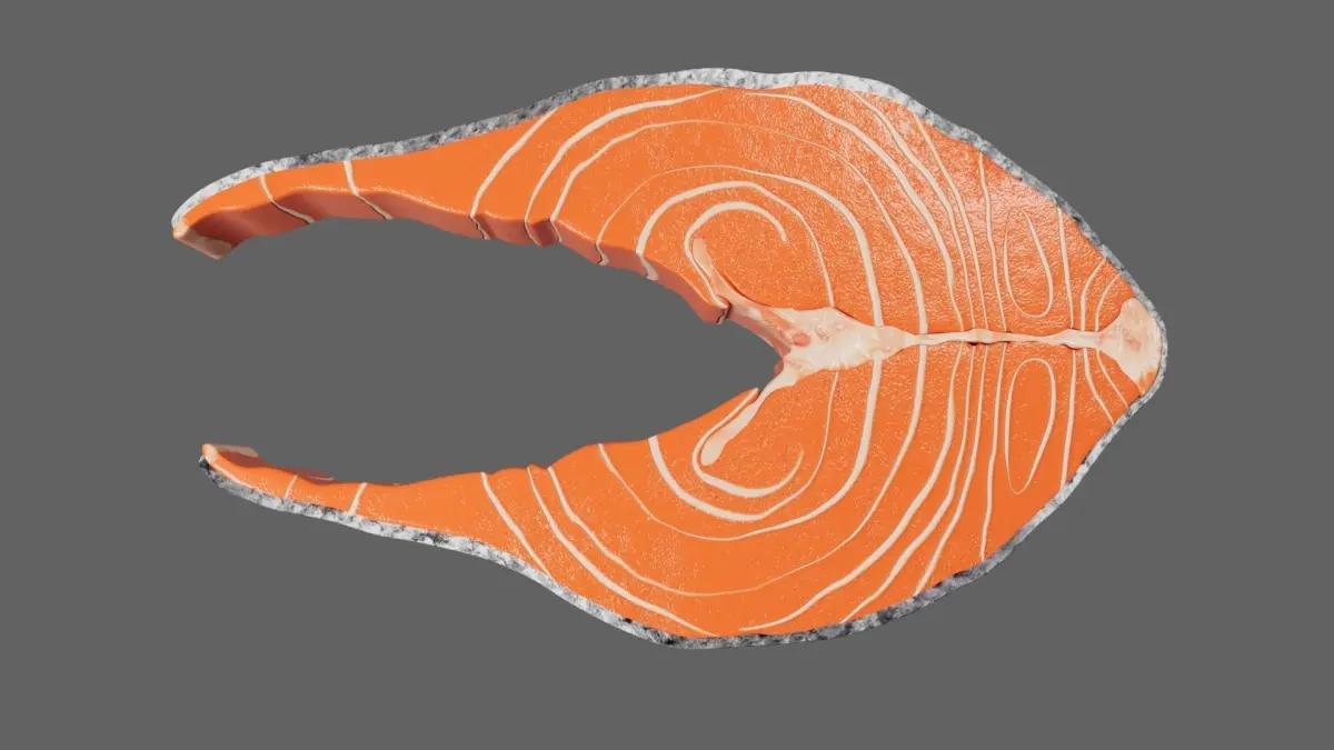 This is a 3d model of salmon slice. The file contains textures, color maps, bump maps, normal maps and meshes. The material is not inserted in the file. Cover images were rendered with vray materials.